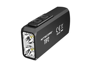 One of our most popular key chain lights, the Nitecore Tip now has a savvy successor - the Nitecore Tip 2! Thanks to a brand new design with innovative features this light is perfect for close to long range lighting. The Tip 2 has a detachable magnetic tail great for hand-held or hands-free lighting. It takes an incredible 5.5 lbs of weight to pull the tail cap free from the light, preventing accidental loss. Two Neodymium magnets provide superior strength that keeps the light attached to the tail cap or to magnetic surfaces for a hands-free tasks. The tail doubles as protection that conceals the built-in micro-USB port. Additional carrying options, including a detachable clip, are perfect for attaching the light to backpacks, hats, and more!