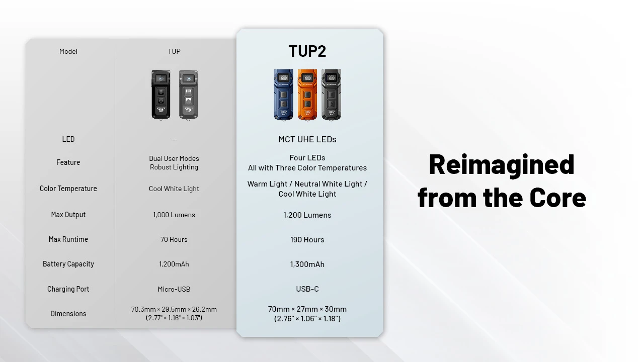 Nitecore TUP 2 USB-C Rechargeable LED Keychain Flashlight - 1200 Lumens - NiteLab MCT UHE - Uses Built-in 1300mAh Li-ion Battery Pack - Multiple Color Options