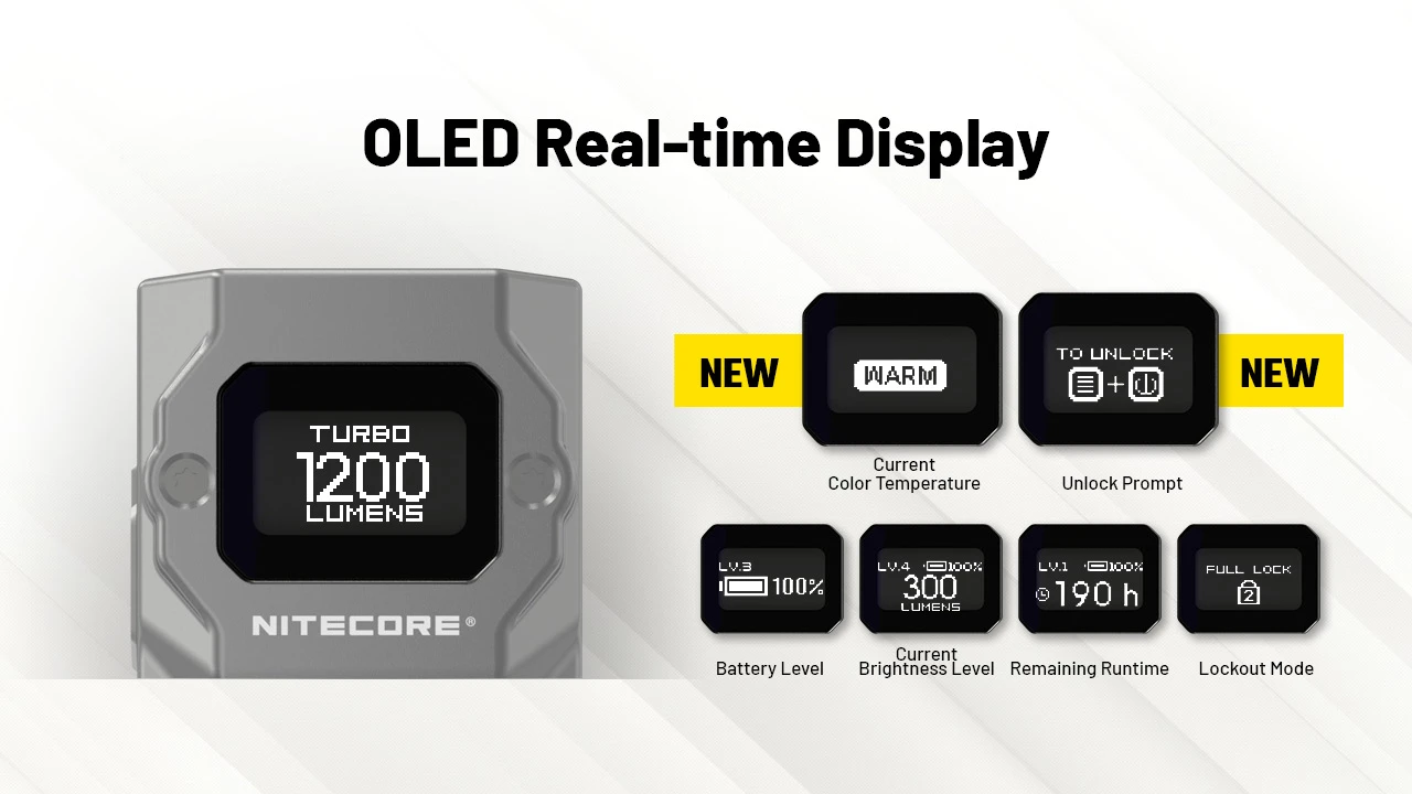 - Next-gen mini flashlight with 1,200 lumens + digital display