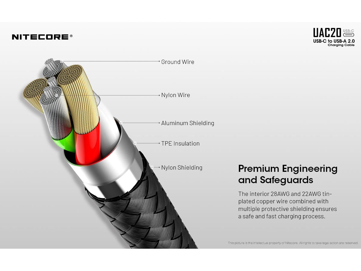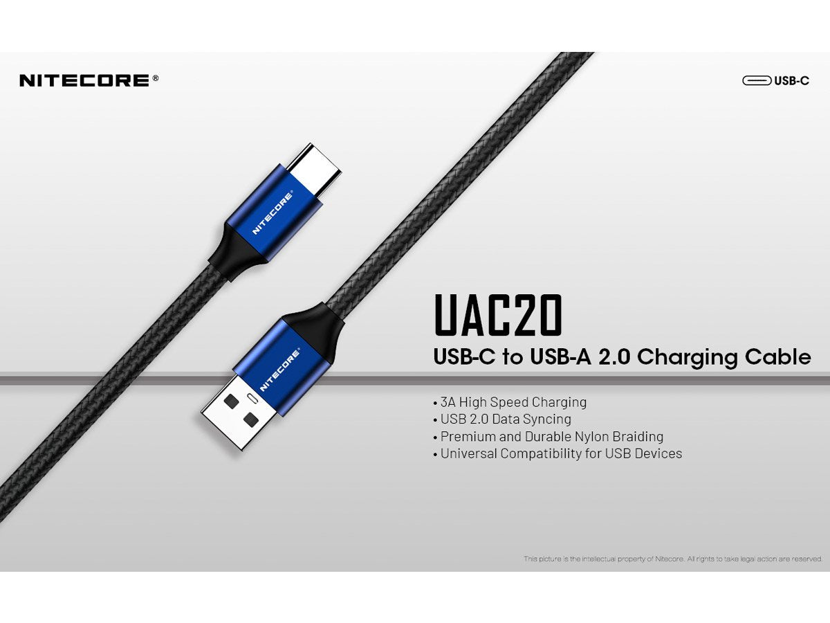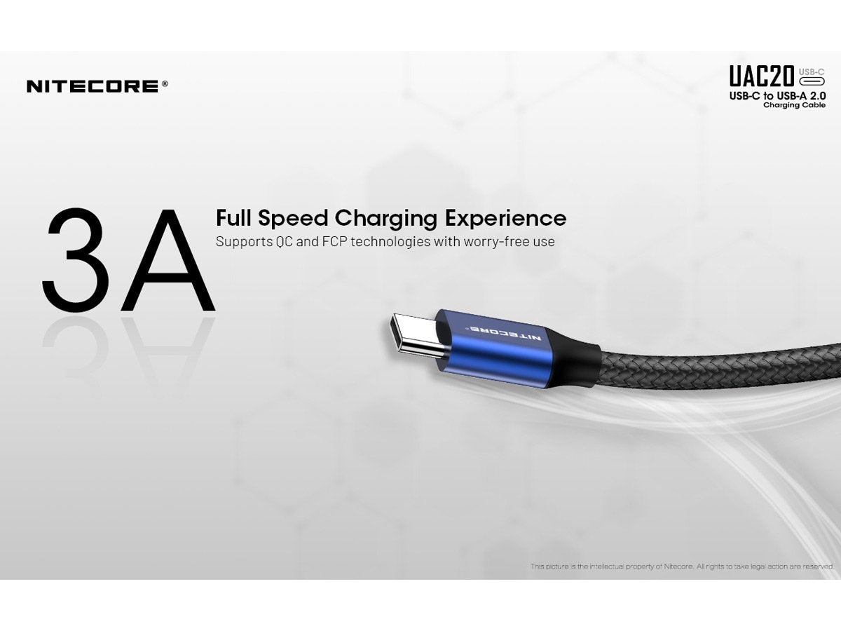 Nitecore UAC20 USB-A to USB-C 3A Charging Cable