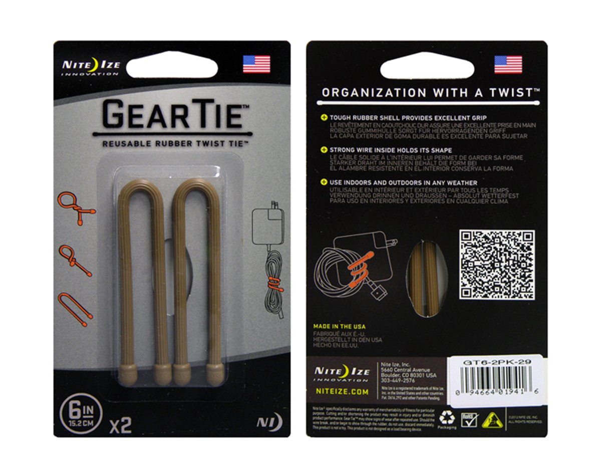 Nite Ize Gear Tie Reusable Rubber Twist Tie - 6-Inch - 2 Pack - Coyote Brown (GT6-2PK-29)