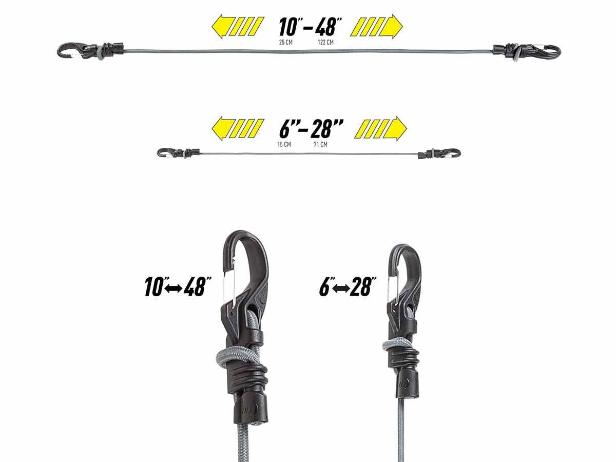 When you need to fasten down your belongings as firmly as possible, make sure you use the NiteIze KnotBone Adjustable Bungee! With its high-quality, adjustable cord, this product can secure your belongings with elasticity and classic tightening, ensuring they will never fall or get damaged. The adjustable design also makes it easy to retighten the cord after prolonged use so that you don't have to completely redo the binding. Its carabiner clips ensure that the bungee cord itself won't ever accidentally detach!