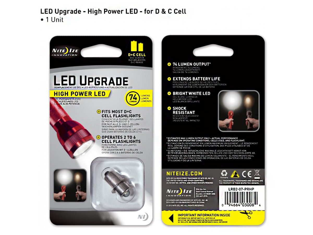 Nite Ize High-Power LED Upgrade Kit - 74 Lumens - Fits D and C Cell Flashlights (LRB2-07-PRHP)