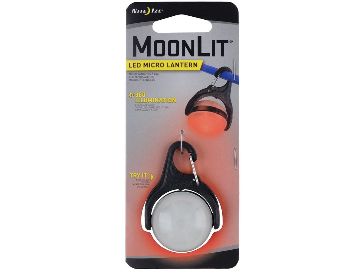 Elegant, compact, and endlessly useful, the Nite Ize MoonLit LED Micro Lantern is perfect for a variety of indoor and outdoor applications. Use it as a wearable hands-free light, mount it in your closet or pantry to illuminate dark corners, clip it to your dog's collar, or hang it inside your tent. Wherever you put it, you'll enjoy the 360° swivel that allows you to pinpoint your target. The water-resistant housing will keep you illuminated even in the rain. Switch from glow to flash mode to make the MoonLit a real attention-getter. Easy-to-replace batteries and long run time ensure you'll never waste money on disposable lighting solutions again. The MoonLit's versatility is limited only by your imagination!