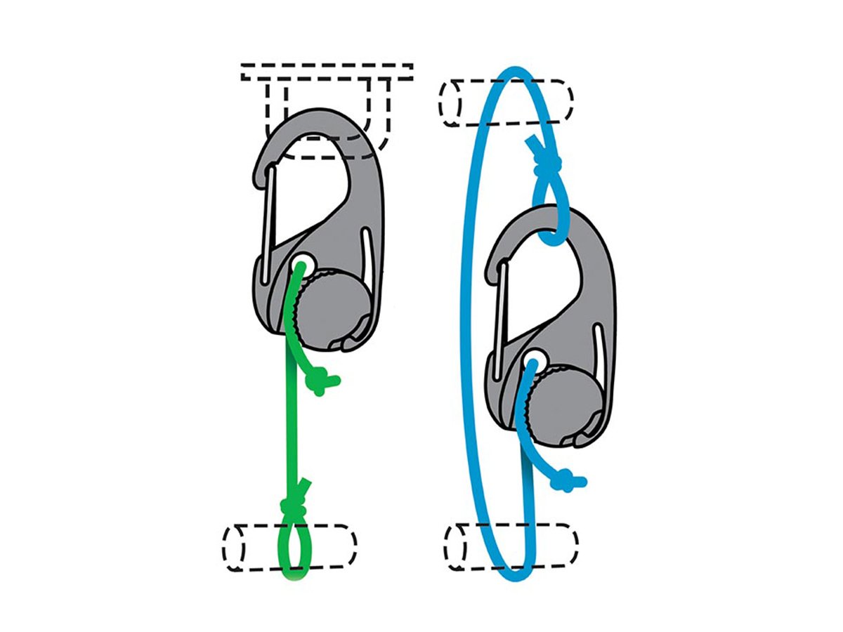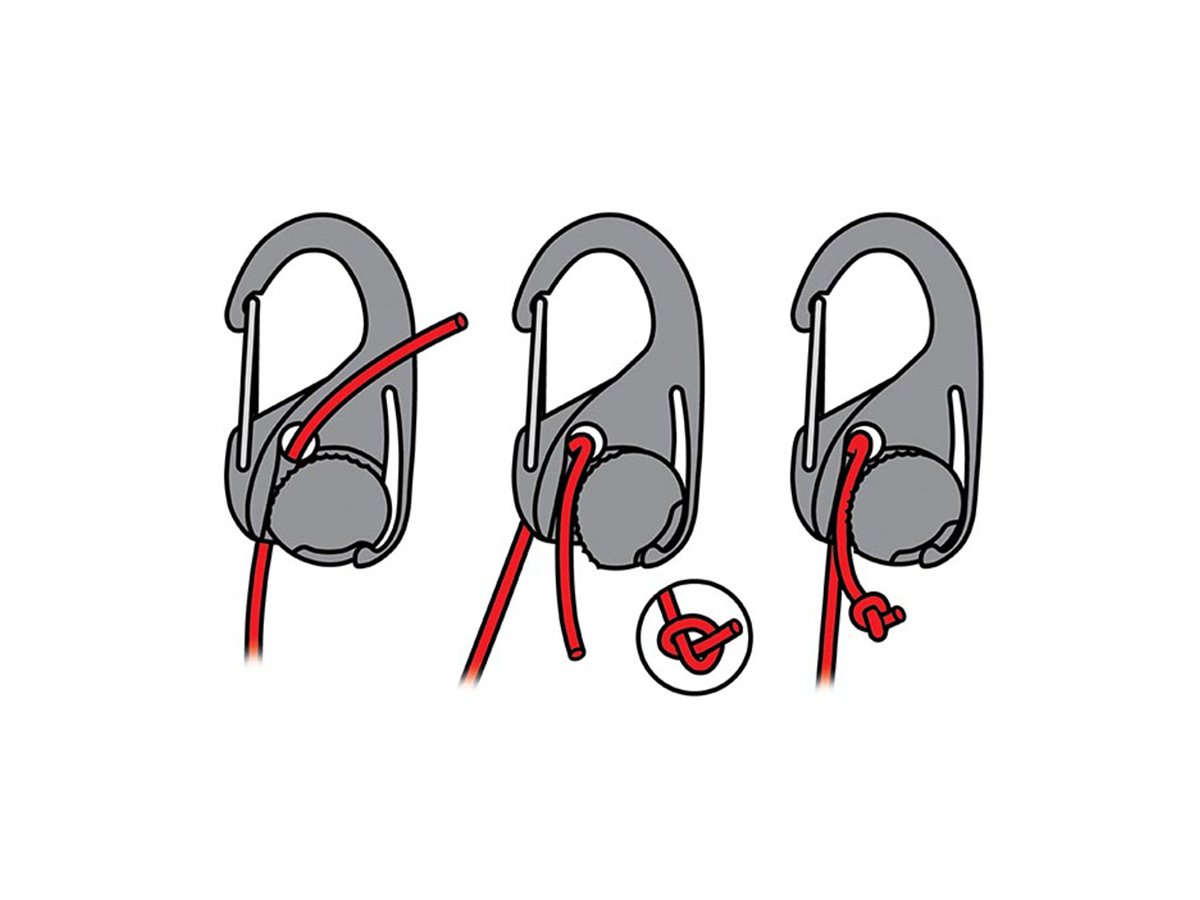 - Tighten, hold tension, or tie off ropes and cords without knots.