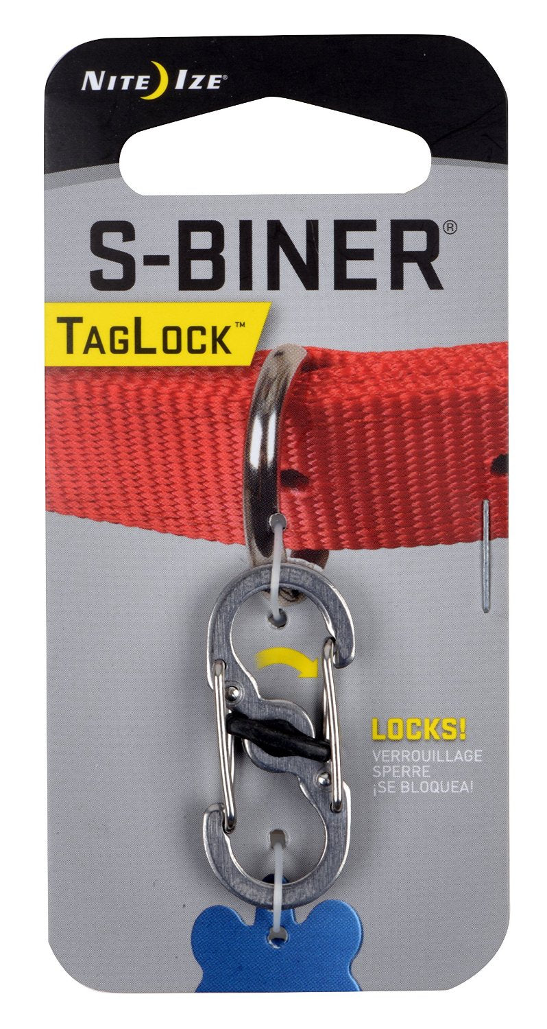 The Nite Ize S-Biner TagLock is specifically designed to connect ID tags to your pet's collar. Most standard tag hangers are either too flimsy or too difficult to thread, but not this S-Biner TagLock from Nite Ize. It is constructed of high quality stainless steel with two stainless steel gates and a center lock made of durable plastic. Attaching your TagLock is easy and can be done by clipping the ID tag to one gate and the D-ring of your pet's collar to the other. Then all you have to do is simply twist the center lock to secure the gates. The Nite Ize S-Biner TagLock is simply the best way to keep your pet's ID tags secure and where you want them.
