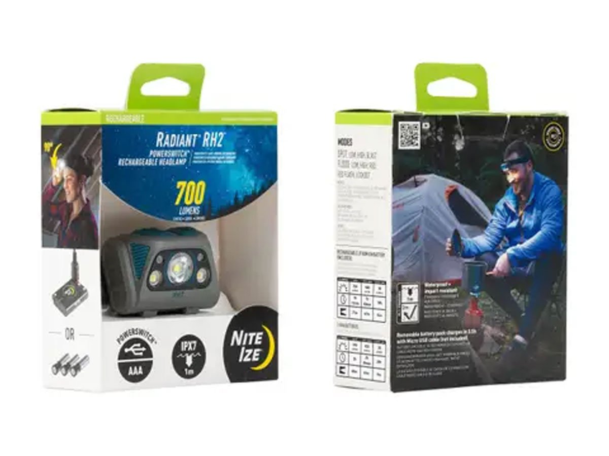 The Nite Ize Radiant RH2 PowerSwitch is a headlamp that has both spot and flood output capability, providing a customizable beam. This allows you to cast a focused beam or broad light to best illuminate diverse environments. The all-encompassing Blast mode combines the spot and flood beams for an ultra-bright output of 700 lumens with plenty of targeted and peripheral light.