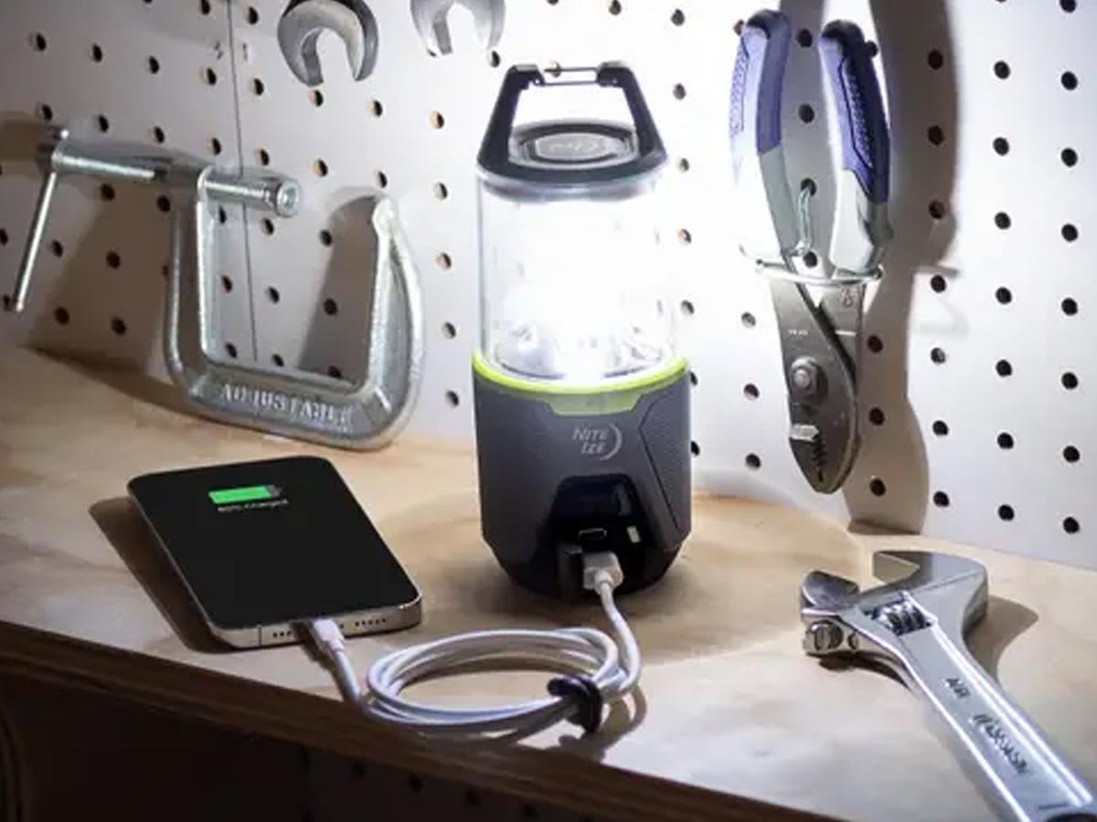 Power bank capability allows you to charge devices like smartphones, making this an excellent solution for power outages or outdoor treks alike. IPX4 weatherproofing will protect the lantern in the rain and it is safe from drops of 1 meter in height. When the power runs low, a charge indicator will turn red, alerting you to use the included USB-C charging cable to power back up.