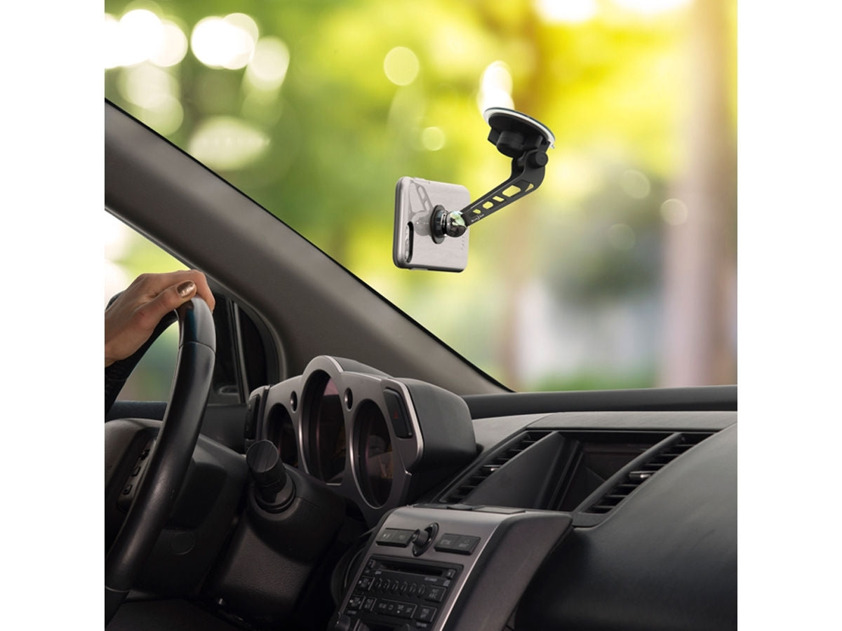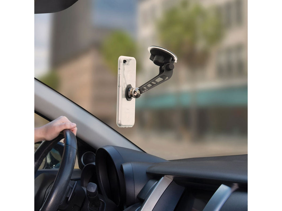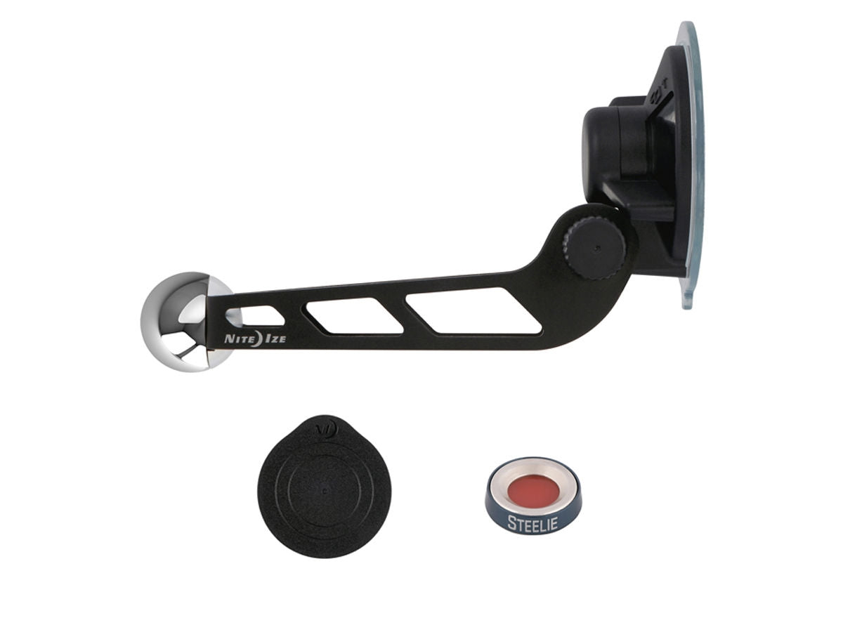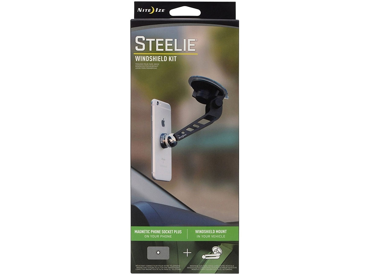 The Nite Ize Steelie Windshield Mount Kit Plus is the ultimate way to ensure you can navigate and communicate with ease while driving.This handy kit features a sturdy aluminum mount that firmly locks onto your windshield using a lever-controlled suction cup. The arm can be easily adjusted to almost any angle and comes with a spherical magnet on its end for mounting your smartphone. The patented Steelie Magnetic Phone Socket Plus is twice as strong as the original phone socket, holding your phone at the perfect angle for you without any chances of it falling or moving. The mount can be attached directly to your phone or to the included Multistick Adapter, which can be attached and removed to your phone multiple times.