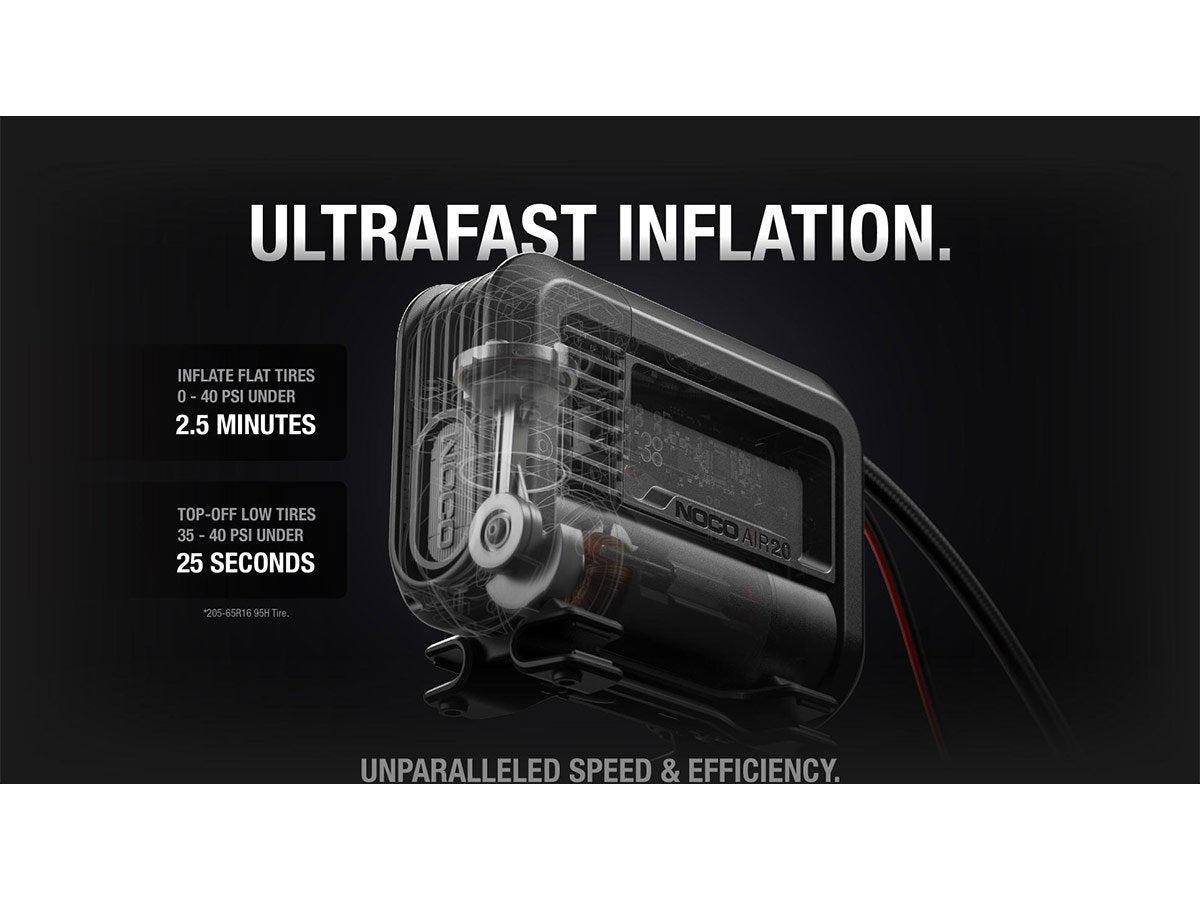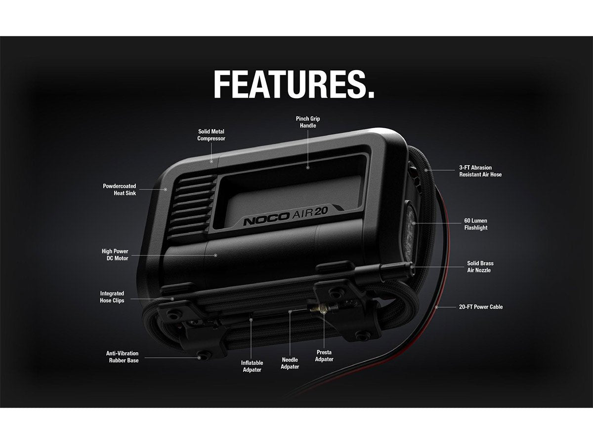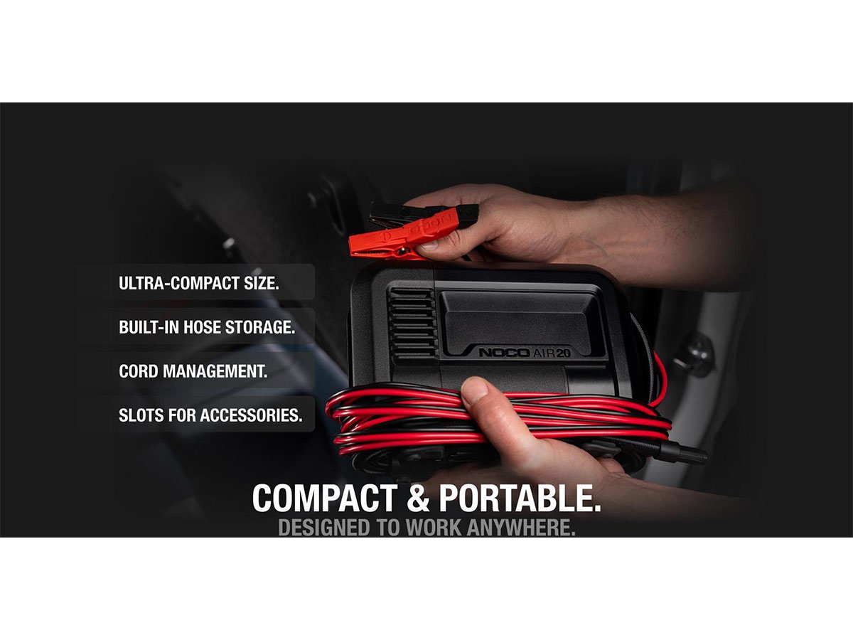 Designed compact, the AIR20 is the ultimate air-inflating solution to keep in your backseat or trunk. With its simple user interface, you can set it up in a flash! All you need to do is turn it on, adjust the pressure level, and inflate. It has a handy LED display that keeps you apprised of the pressure level at a glance, adjustable with simple buttons. NOCO has your back with an air inflator that prioritizes ease of use so you never get stuck in roadside emergencies.