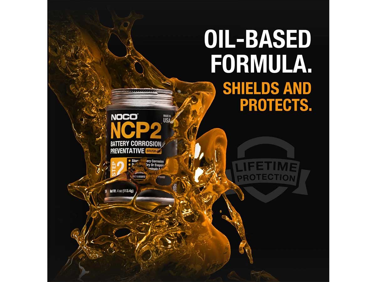 NOCO's original recipe CB104 Brush-On Corrosion Compound is expertly formulated to prevent corrosion on your terminals. It's been doing it on billions of batteries for over 100 years. Simply apply to the terminal with the included brush. The oil-based formula will remain on your battery and help extend its life! Get the most out of your products by taking care of them with CB104 Brush-On Corrosion Compound.