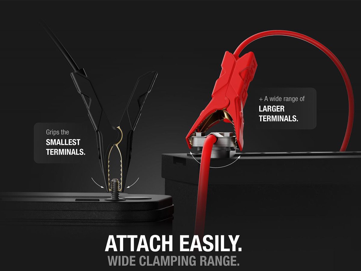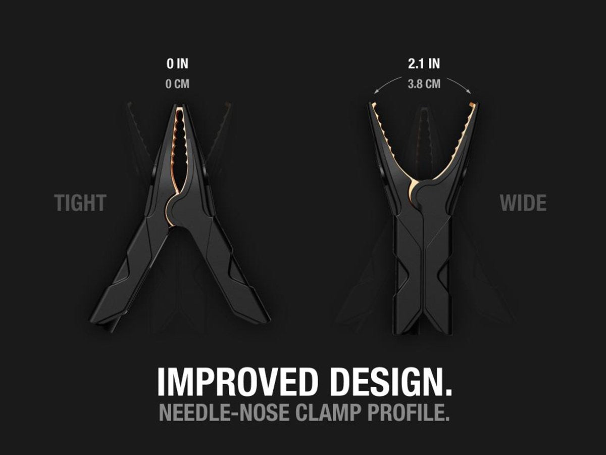 The needle-nose build and 2.1-inch clamp width help with jump-starting hard-to-reach or oversized battery terminals. These clamps are engineered robust for balancing high current flow with little power loss. When they are combined with a compatible NOCO jump starter, your truck or boat is jolted back to life and fully operational.