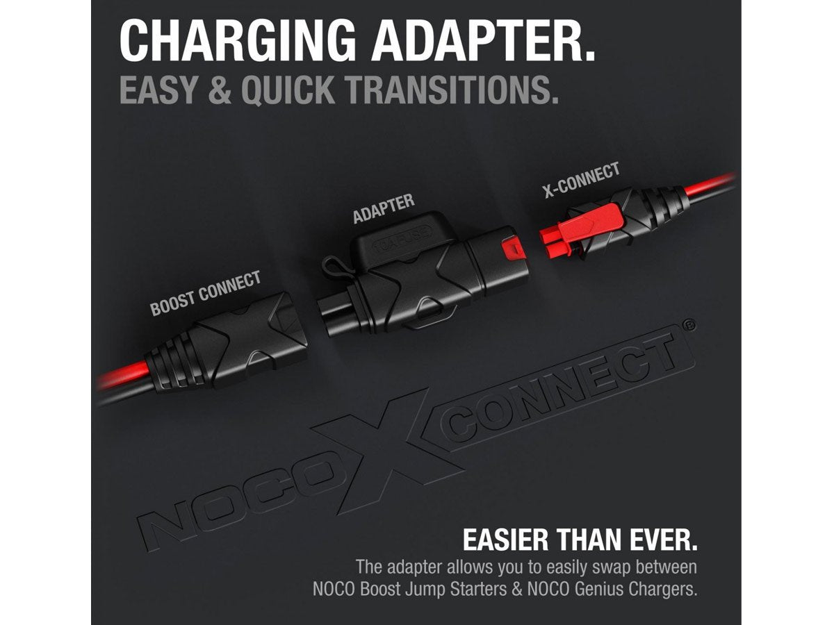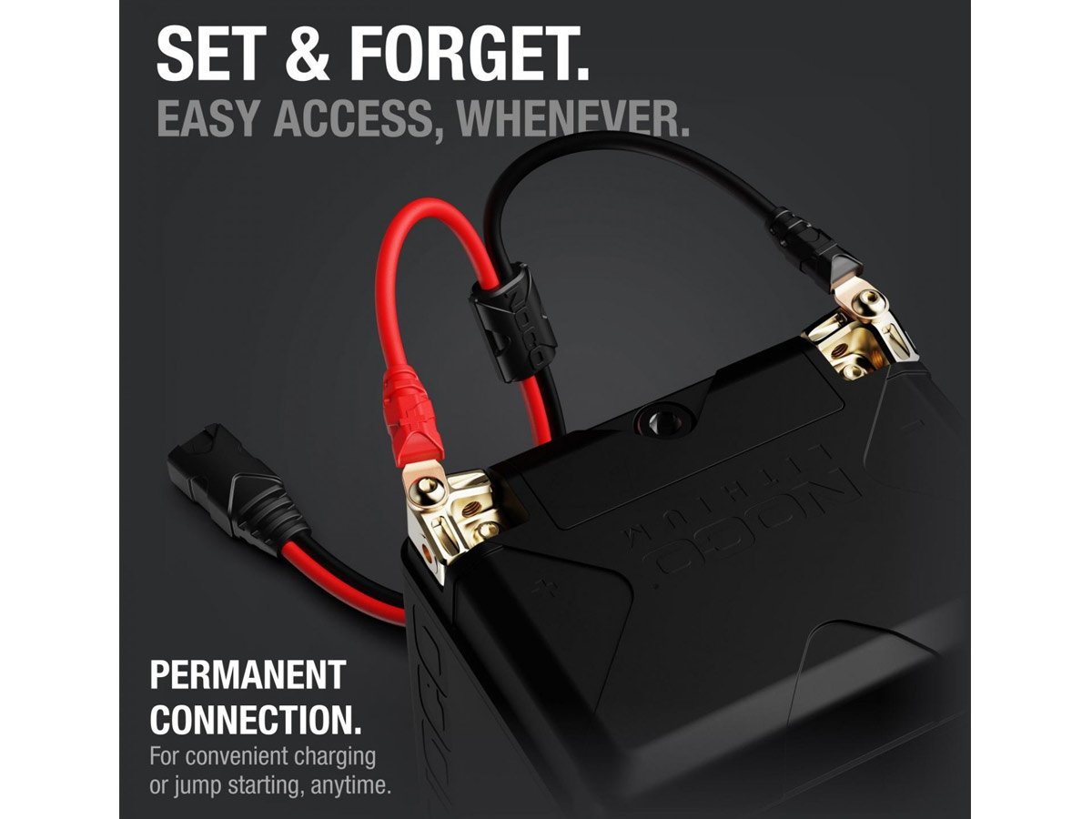 • » Male/female X-Connect adapter linked to lie-flat eyelets for broad compatibility connecting to batteries and NOCO Genius chargers or Boost jump starters