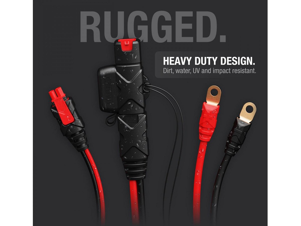 The NOCO GBC007 is an adapter cable that links Genius and G-Series battery chargers or UltraSafe Boost lithium jump starters to vehicle batteries via a 1.5ft cable. With a highly conductive copper plating, the lie-flat eyelet power outputs are efficient and versatile.