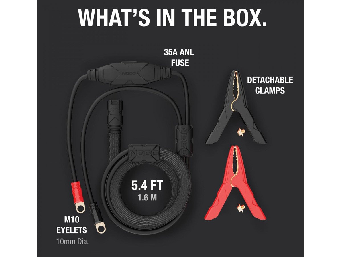 • » Redesigned connectors feature needlenose terminal clamps with detachable M10 eyelets that make for an excellent temporary or permanent battery-mounted power accessory