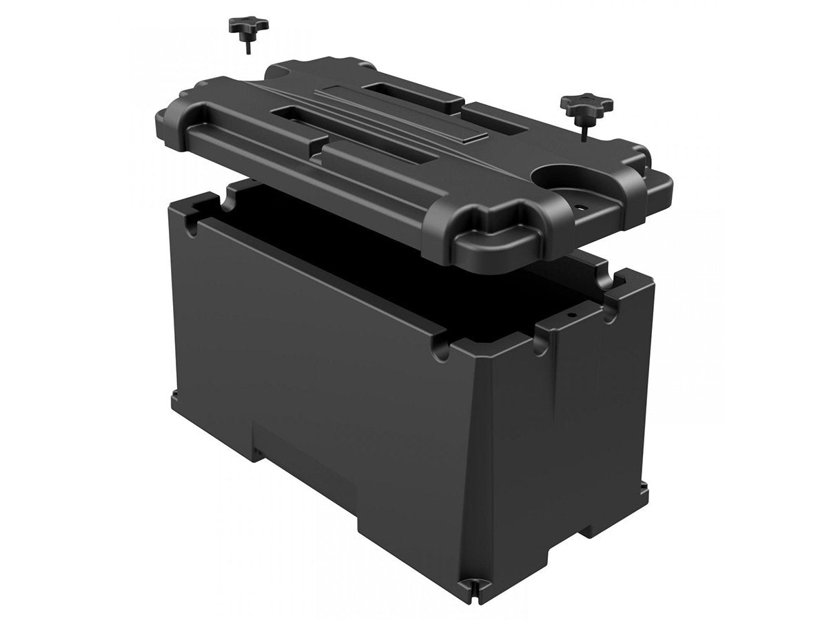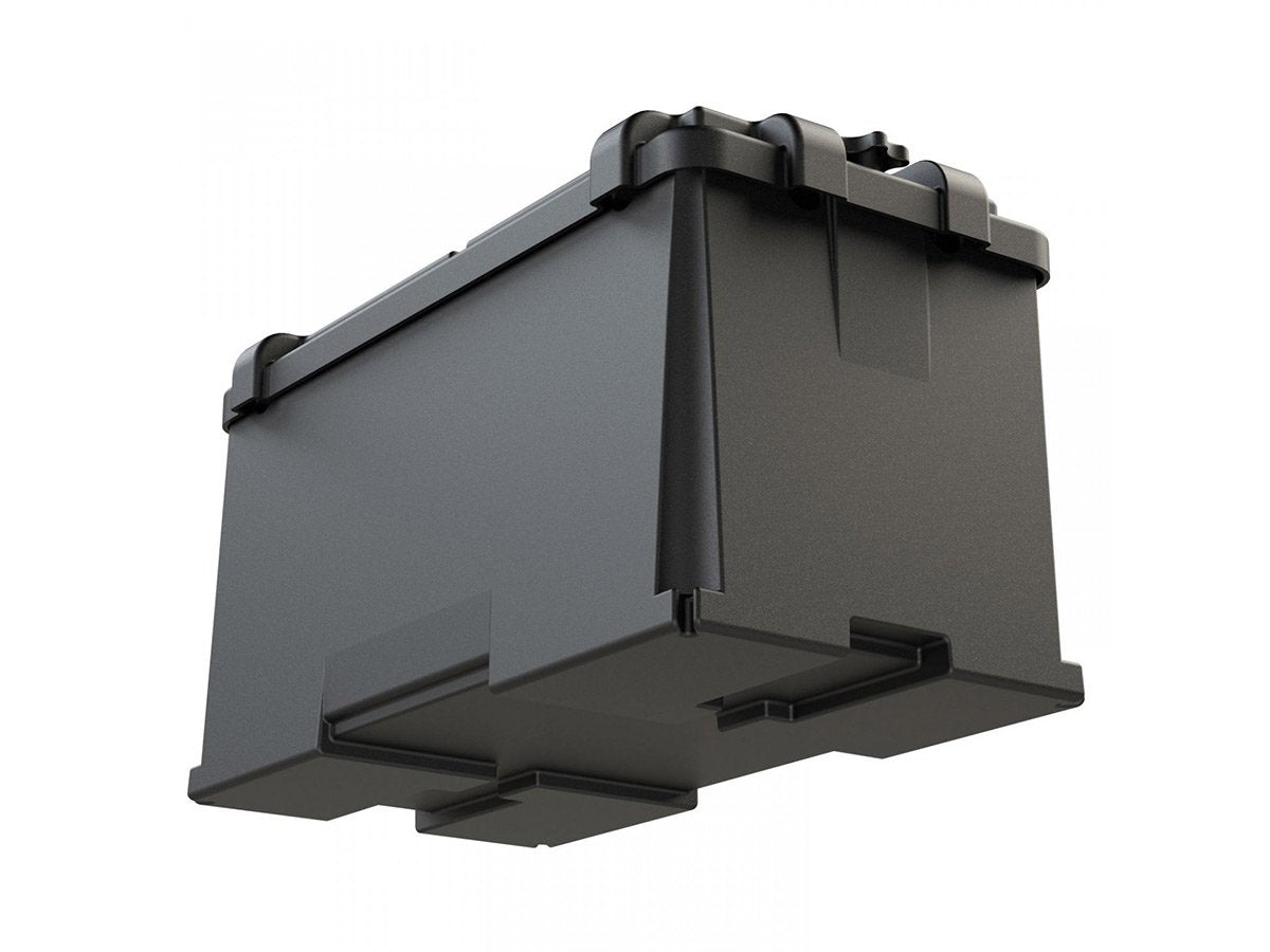 The NOCO HM408 is a battery box fit for your line of work. This commercial-grade battery box is designed to store group 4D batteries, including marine, RV, and commercial equipment. A four-corner fastening system and captive lid allow for streamlined installation in a camper, boat, motorhome, or trailer.