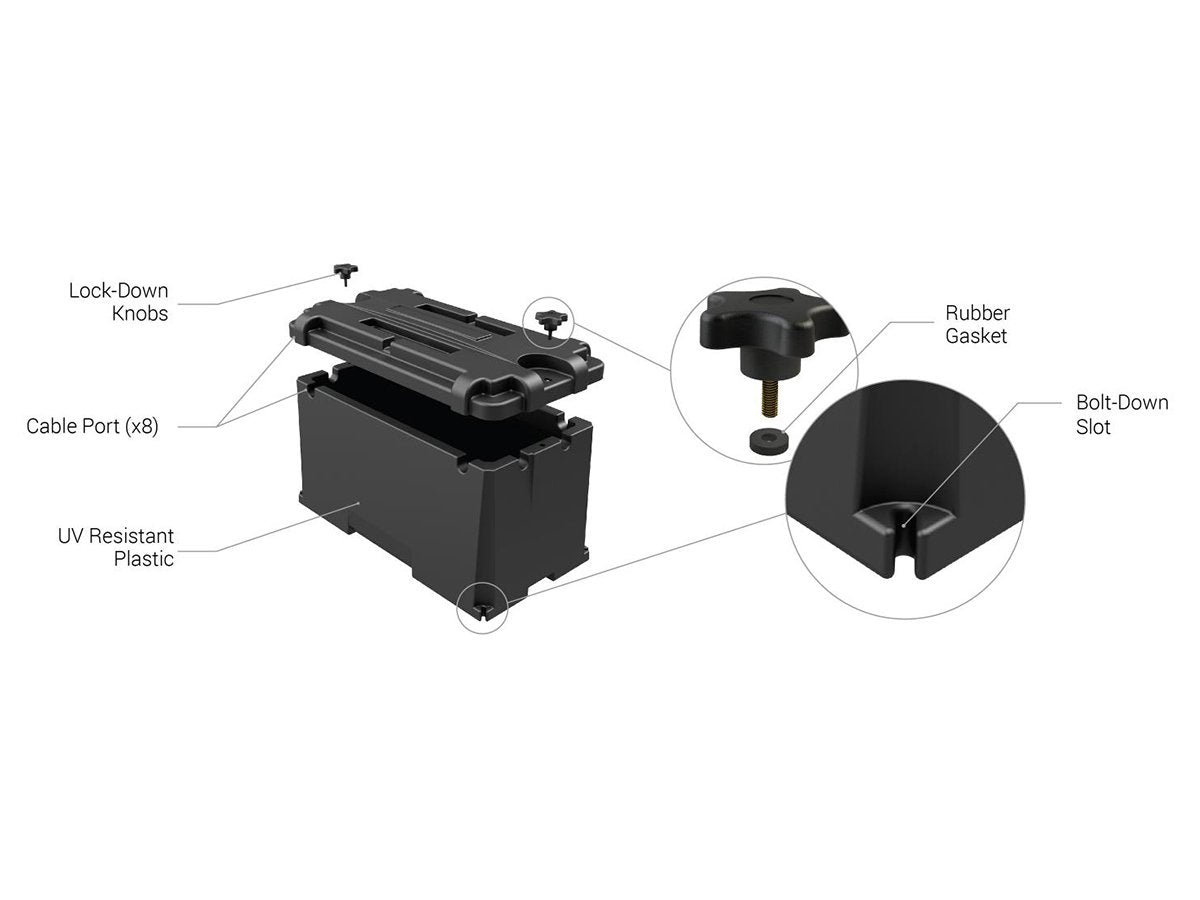 - Intuitive fastening and captive lid make installation easy for any boat or camper