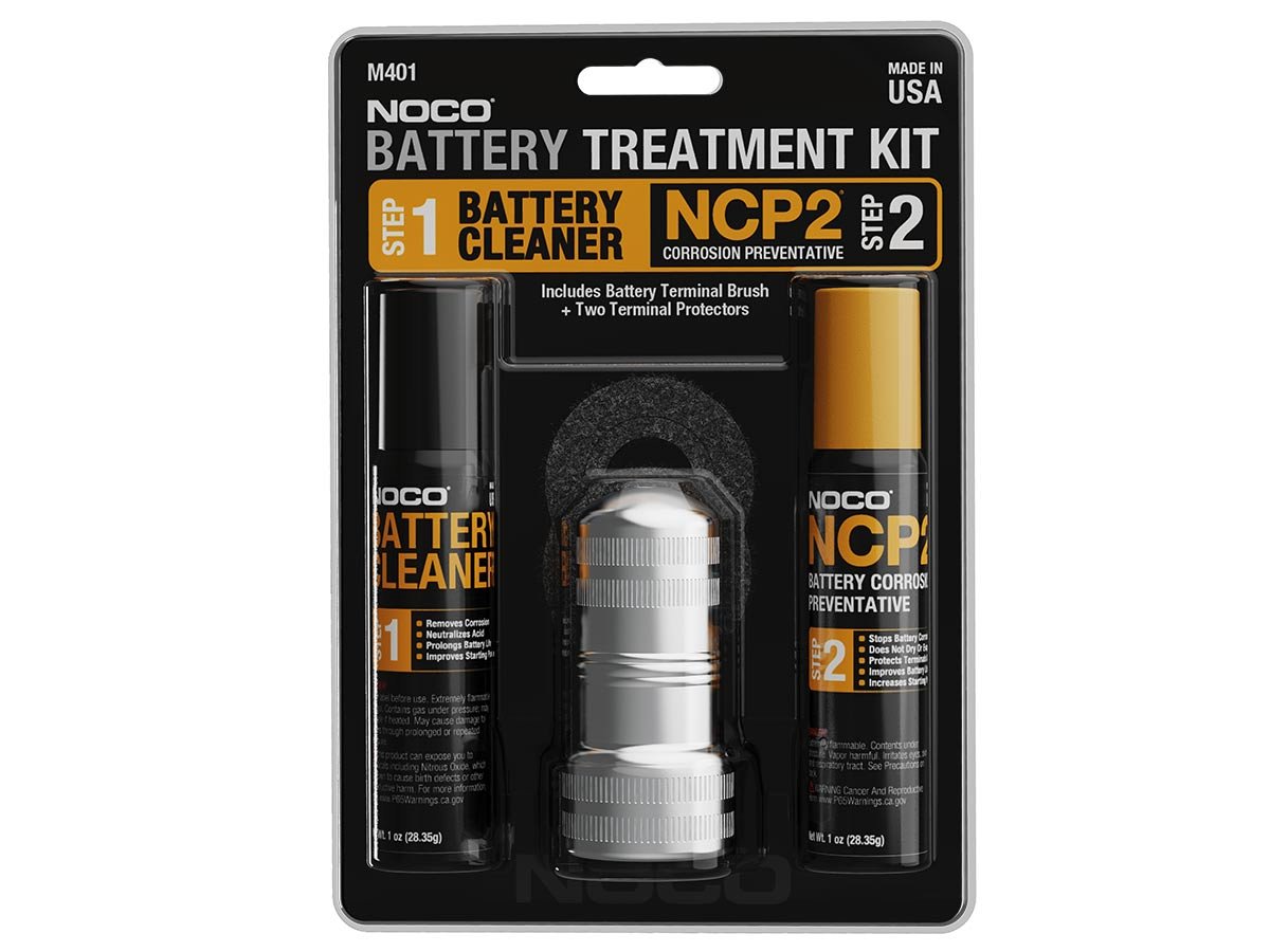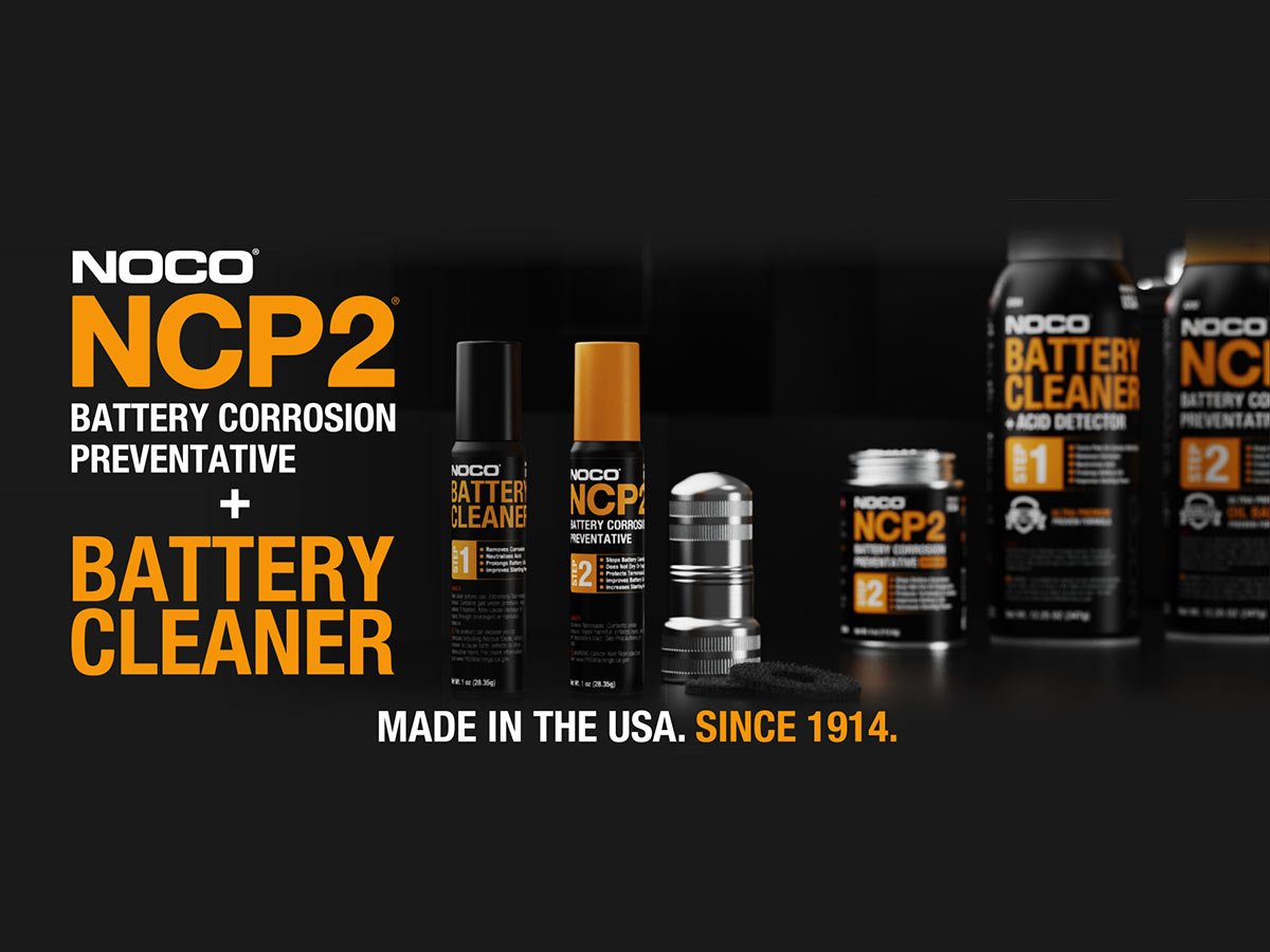 - » Includes 1oz aerosol cans of NOCO Battery Cleaner and NCP2 Battery Corrosion Preventative, a battery terminal brush, and two battery terminal protectors