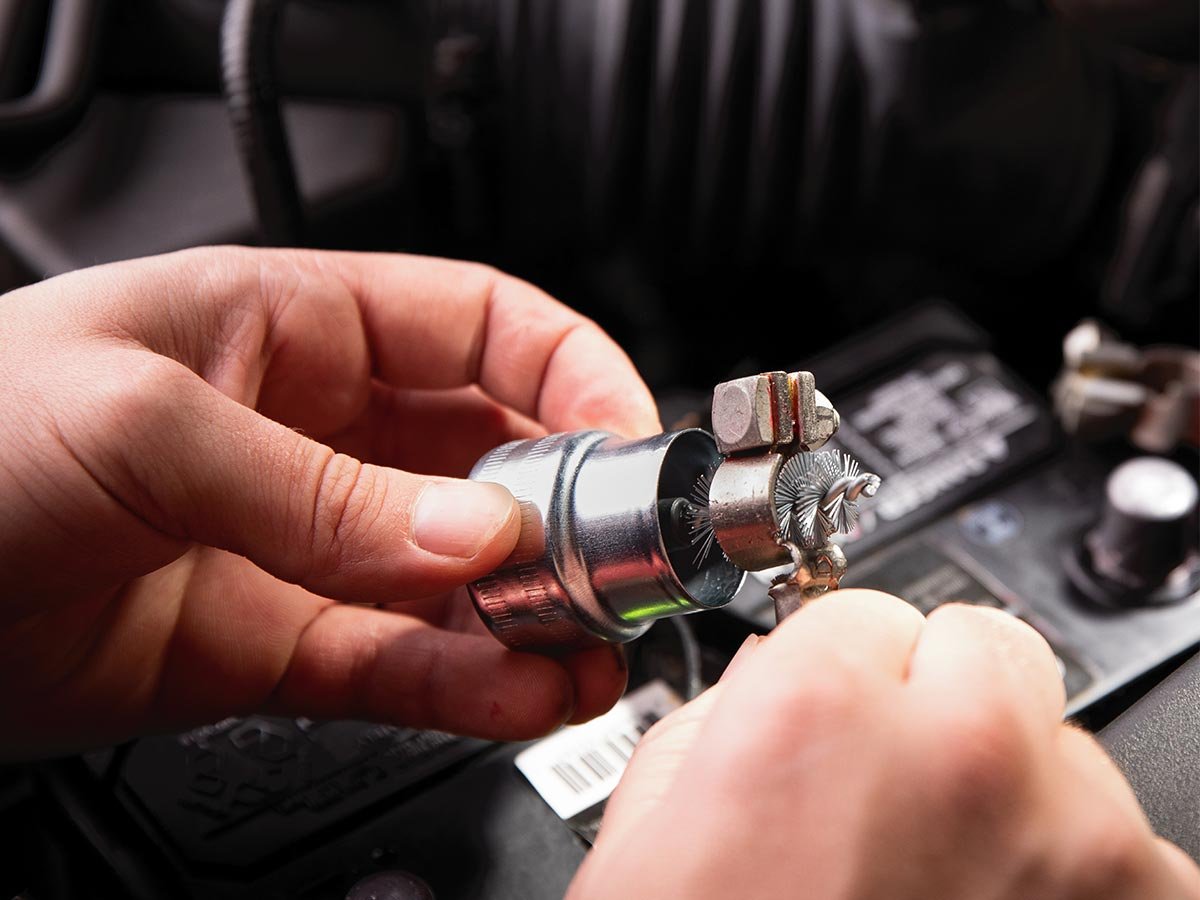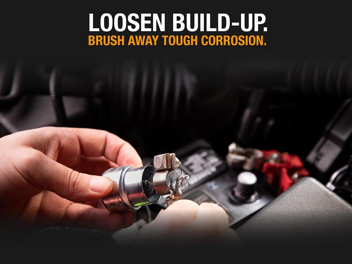- » Use the battery terminal brush to get hands-on with tough built-up corrosion
