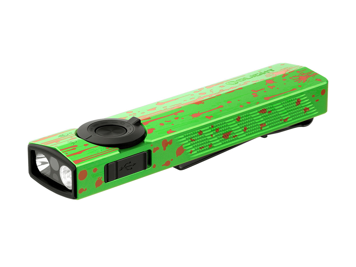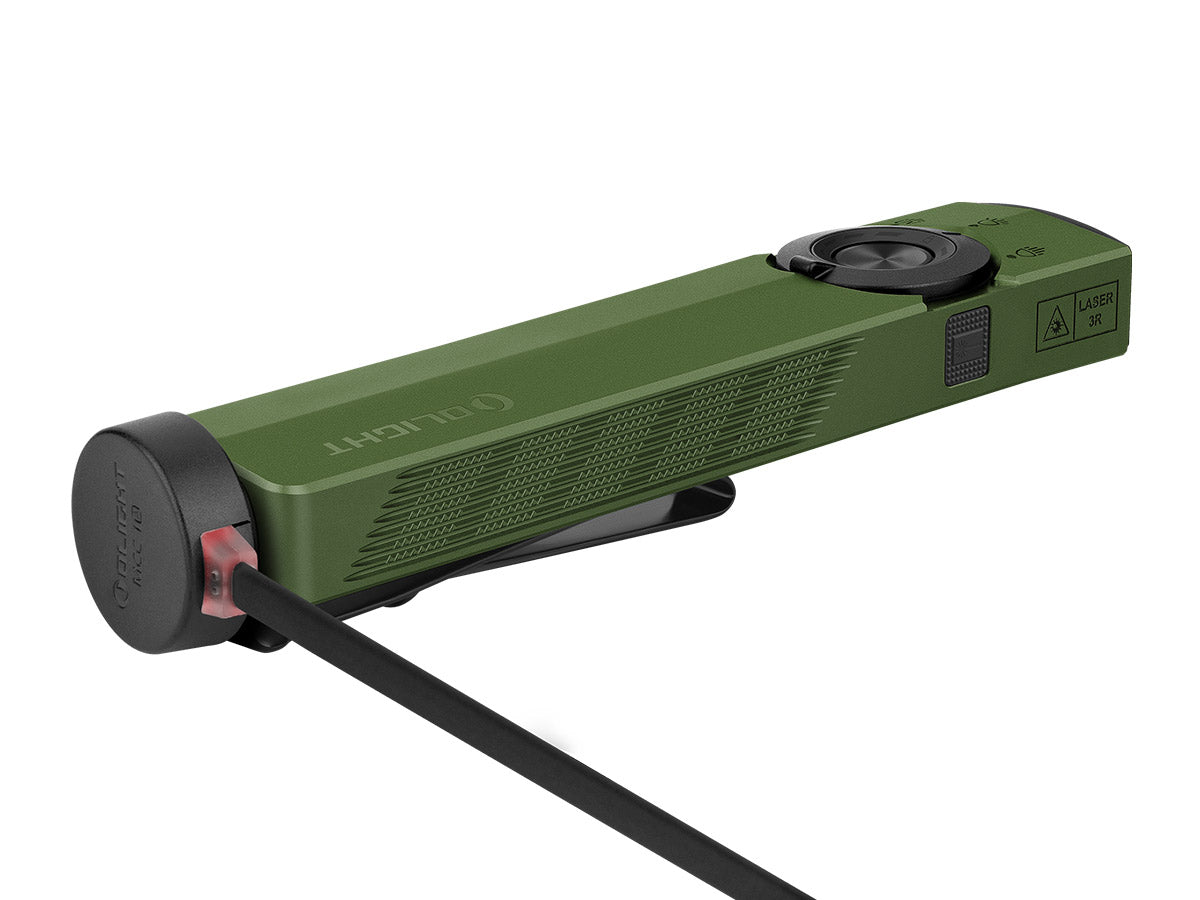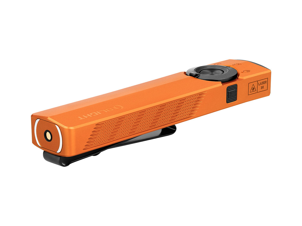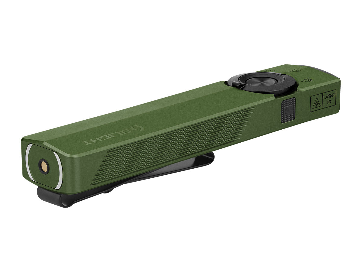 If you love the Olight Arkfeld, get ready for the upgrade; the Olight ArkPro! Experience the upgraded Olight ArkPro, a 3-in-1 flashlight featuring white, UV, and green laser lighting modes for a wide range of applications, from daily carry to professional use. With spot and flood beams and multiple mixed illumination options, the ArkPro offers versatile visibility for any situation. Its simple rotary switch ensures seamless mode selection, while the optimized battery system and output indicator keeps you powered and informed.