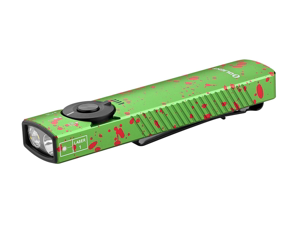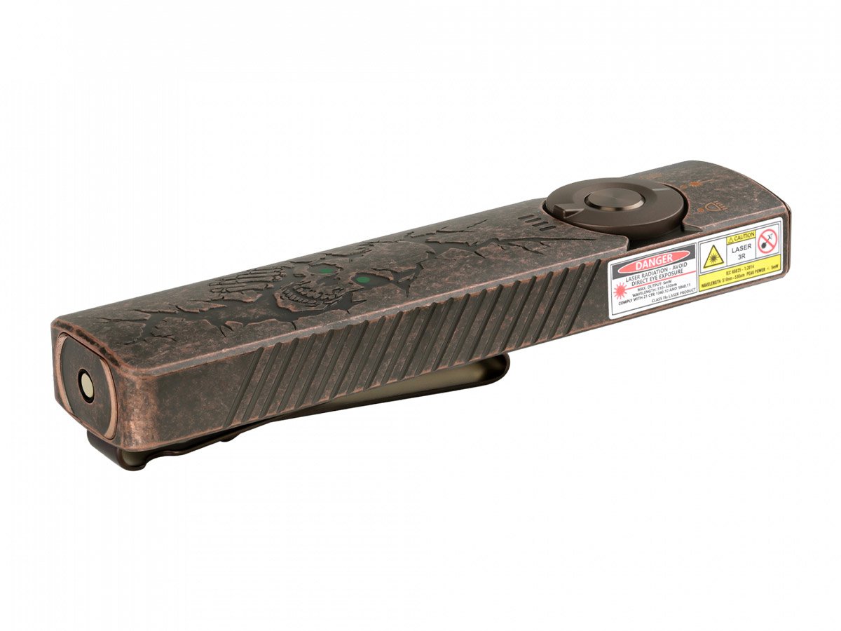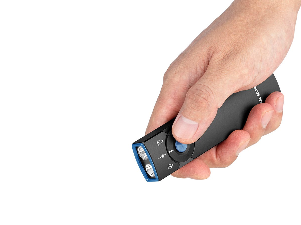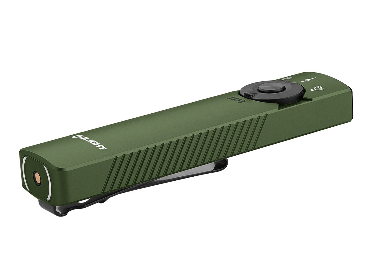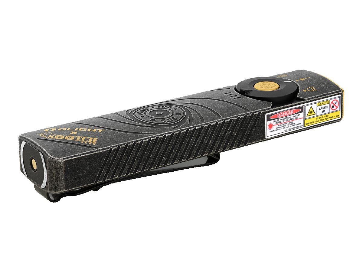 You read that right - Olight's Arkfeld Pro has triple the lighting possibilities all in one flashlight. Access a cool or neutral white light, a green laser beam, and a UV light with the easy-to-use central dial.