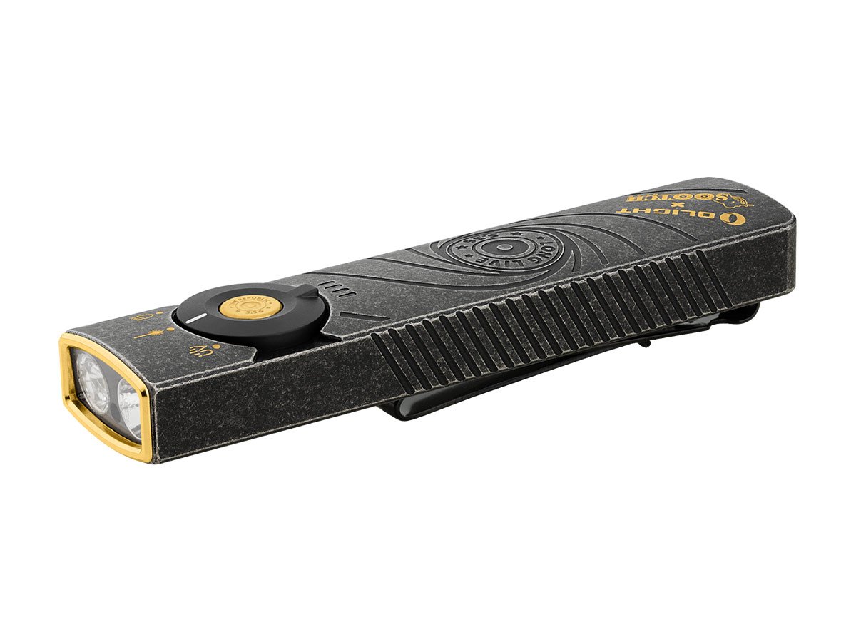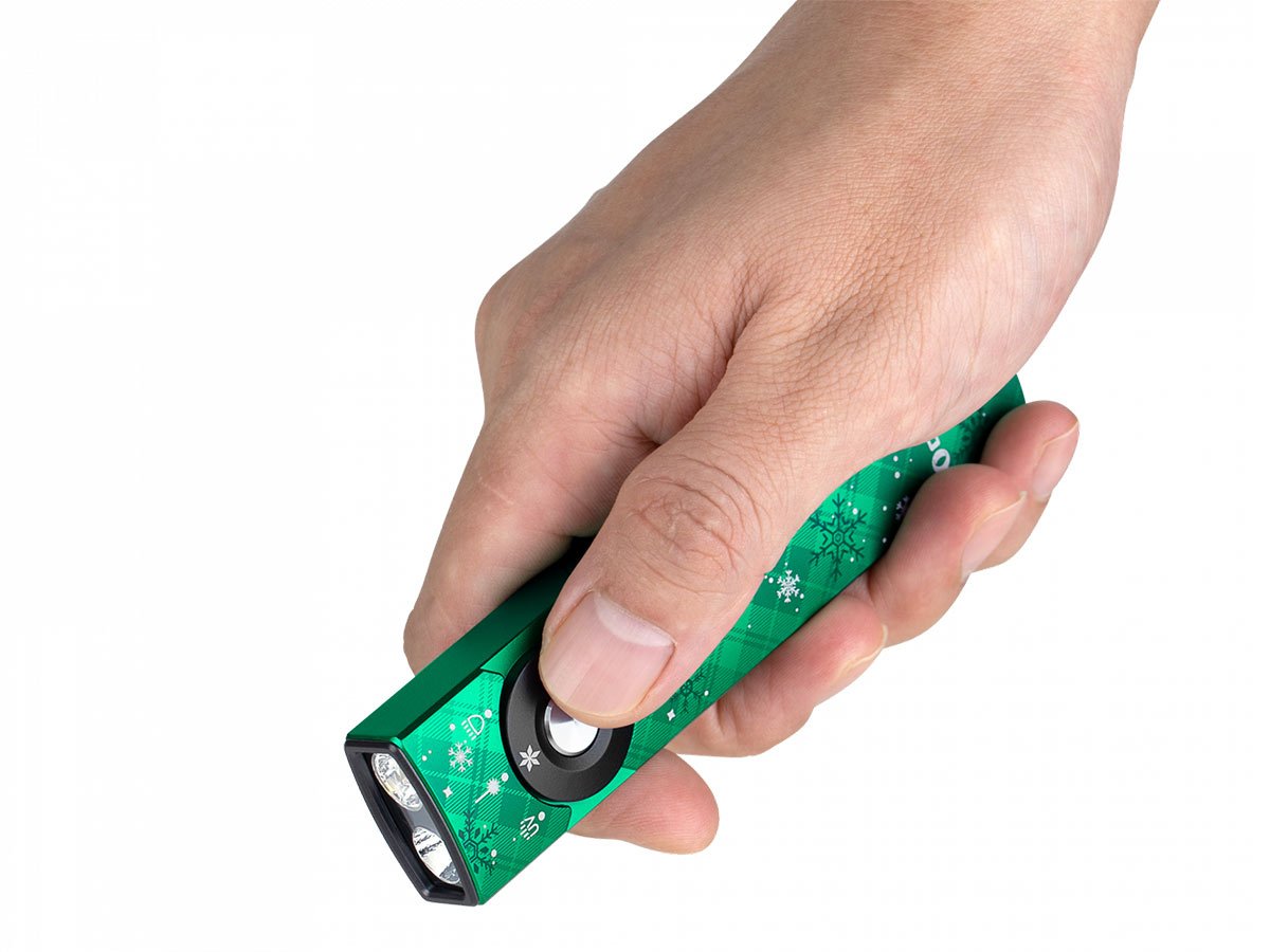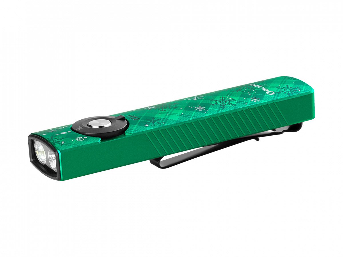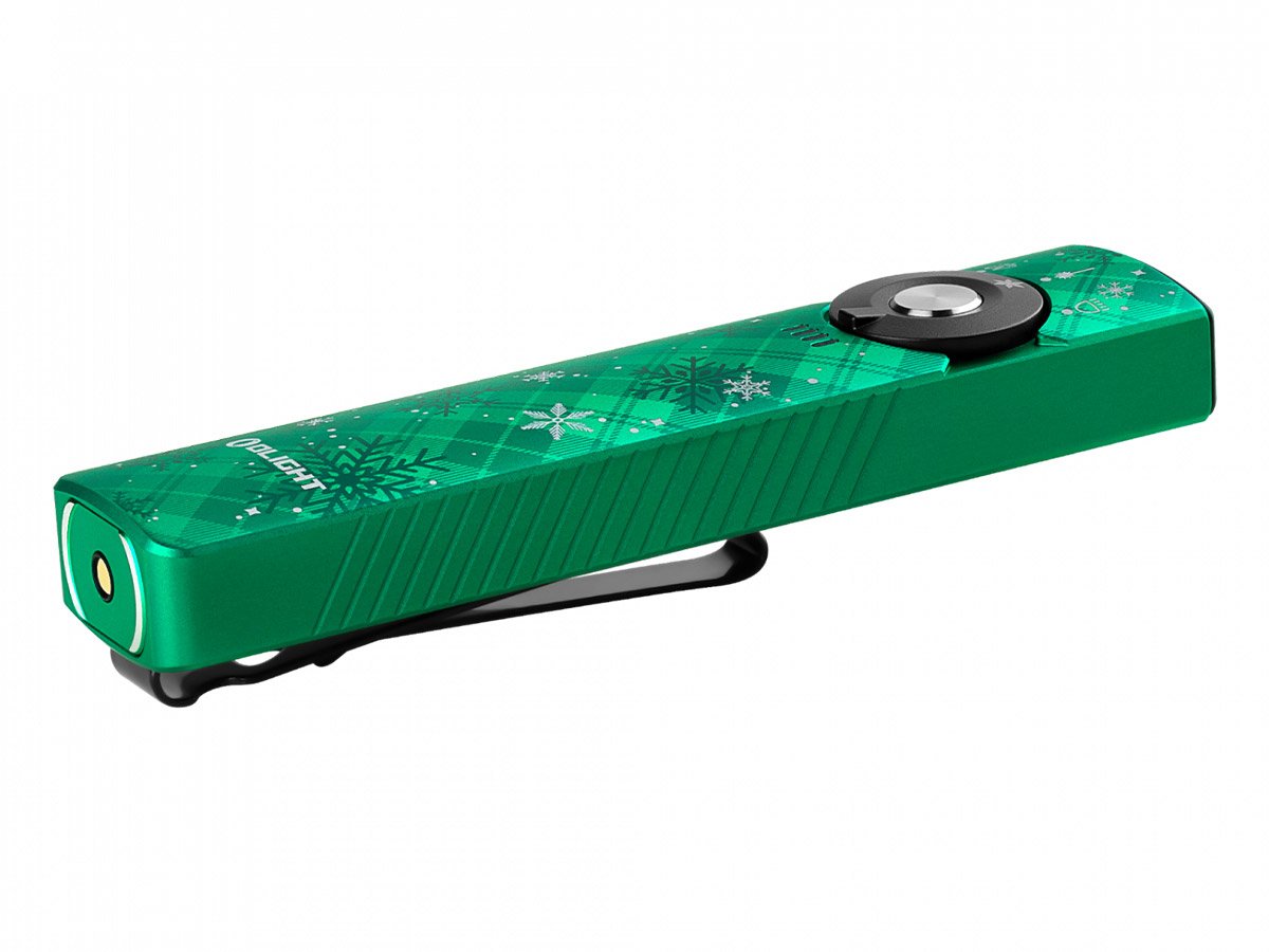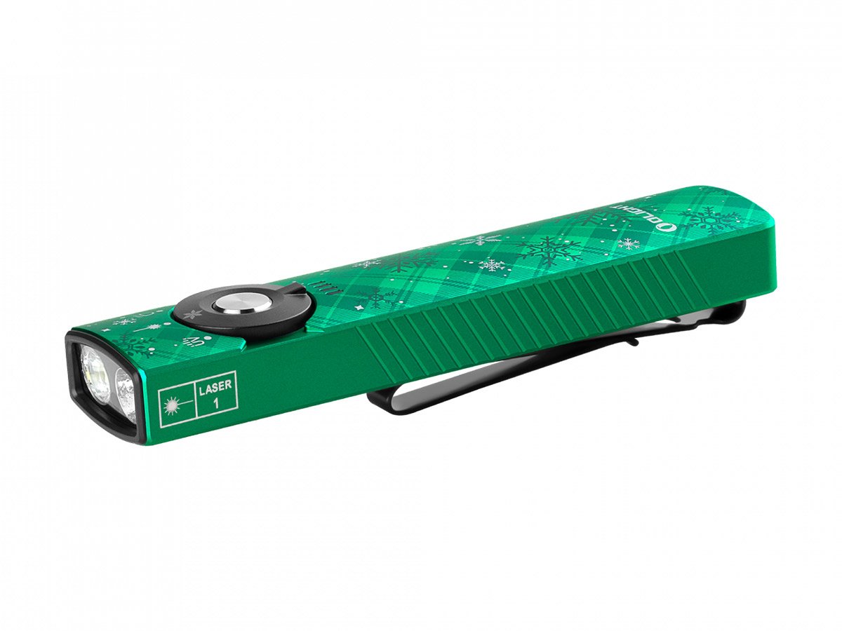 You read that right - Olight's Arkfeld Pro has triple the lighting possibilities all in one flashlight. Access a cool or neutral white light, a green laser beam, and a UV light with the easy-to-use central dial.