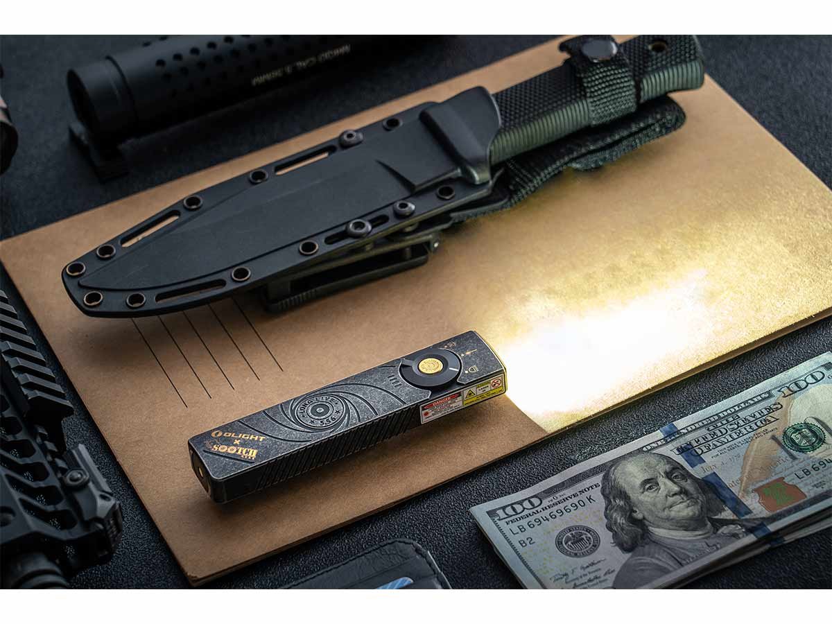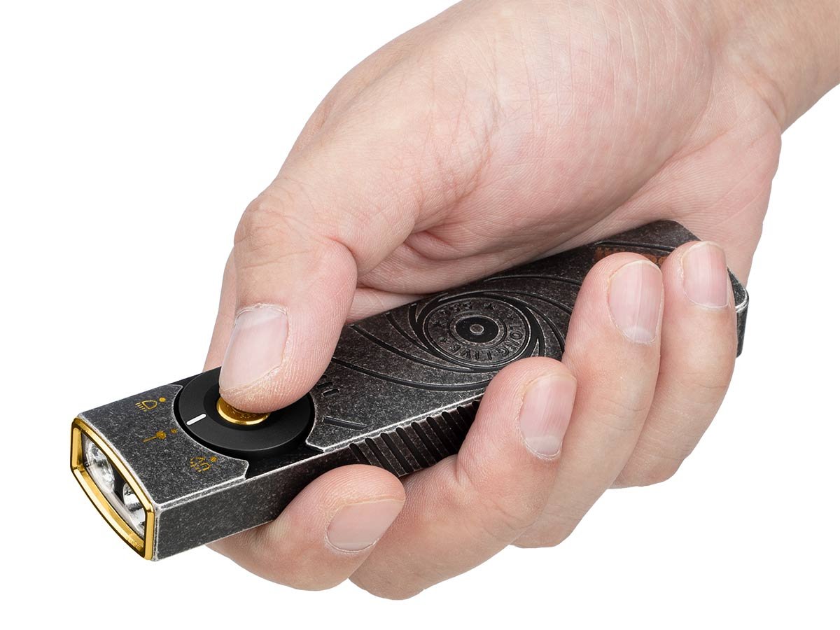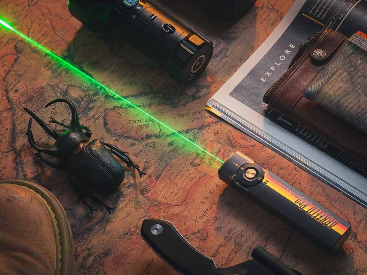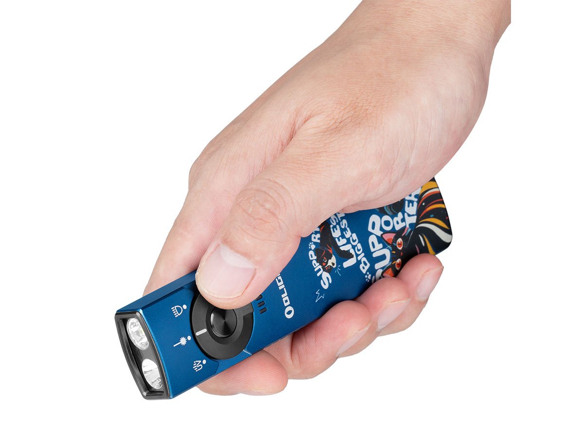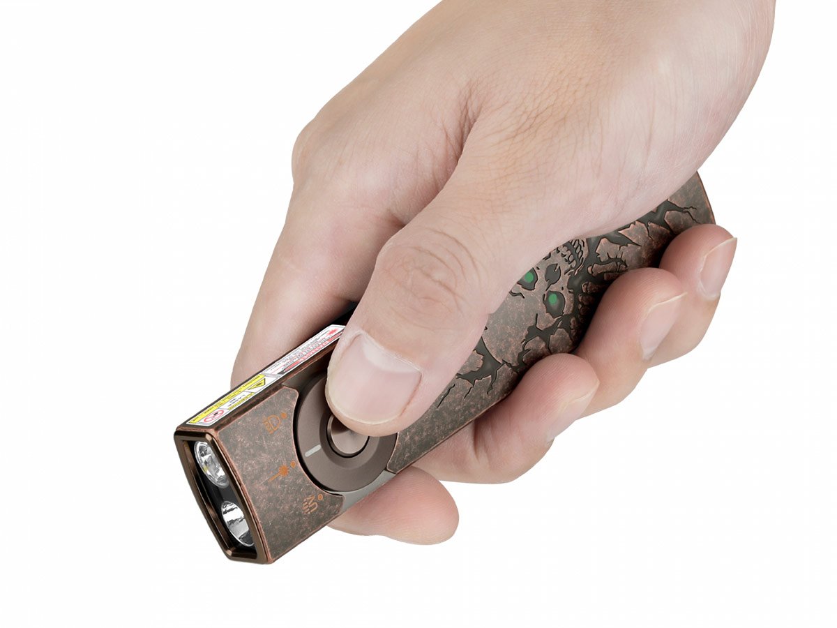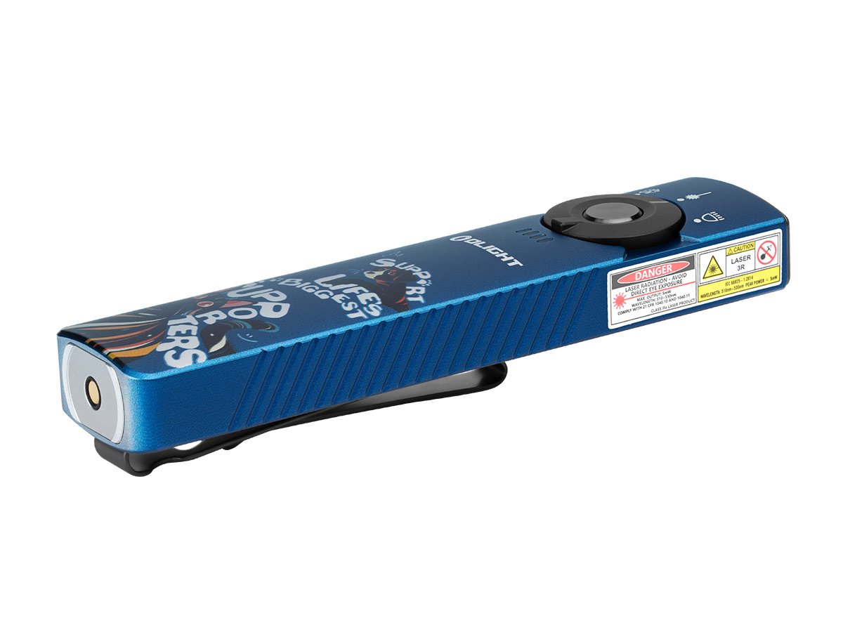 You read that right - Olight's Arkfeld Pro has triple the lighting possibilities all in one flashlight. Access a cool or neutral white light, a green laser beam, and a UV light with the easy-to-use central dial.