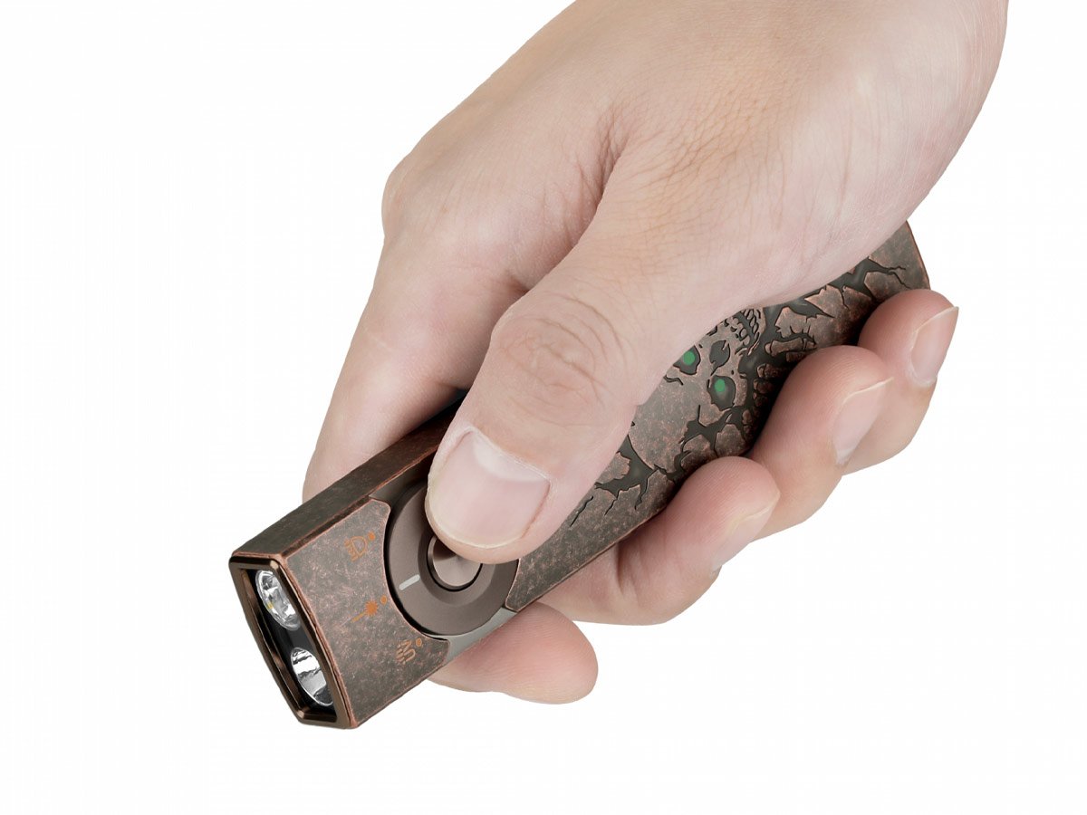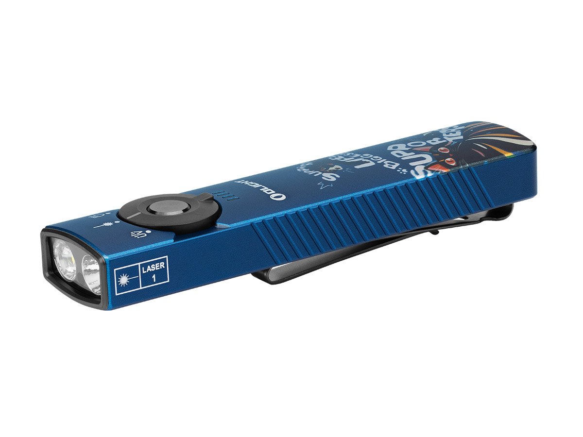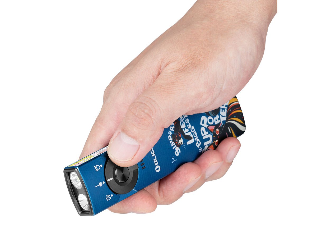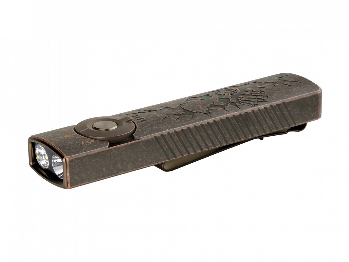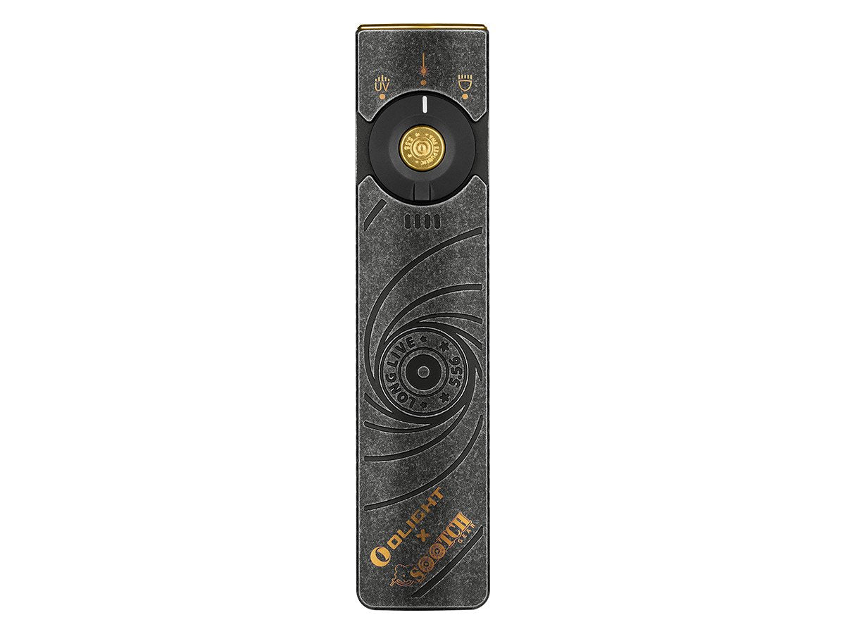 You read that right - Olight's Arkfeld Pro has triple the lighting possibilities all in one flashlight. Access a cool or neutral white light, a green laser beam, and a UV light with the easy-to-use central dial.