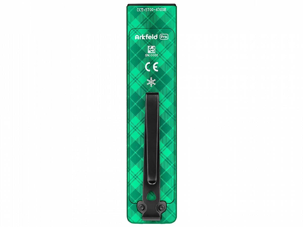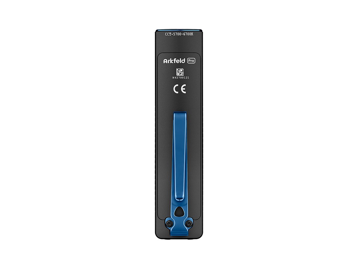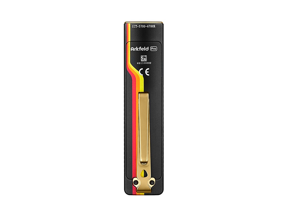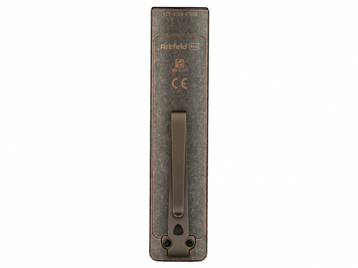 The Arkfeld Pro's triple lighting options are endlessly useful on a day-to-day basis. Use the laser pointer during presentations or to play with pets. In a flash you can switch to the UV light to identify counterfeit bills or monitor cleanliness. With the brilliant white LED, illuminate all surroundings with an output of up to 1,300 lumens! This upgraded everyday carry light is easy to travel or work with thanks to its slim, square design and two-way pocket clip.