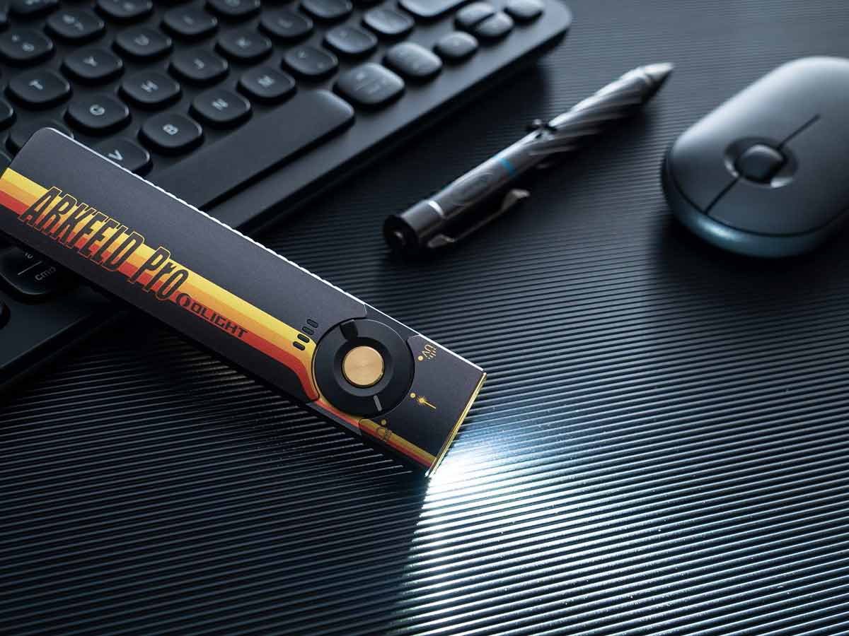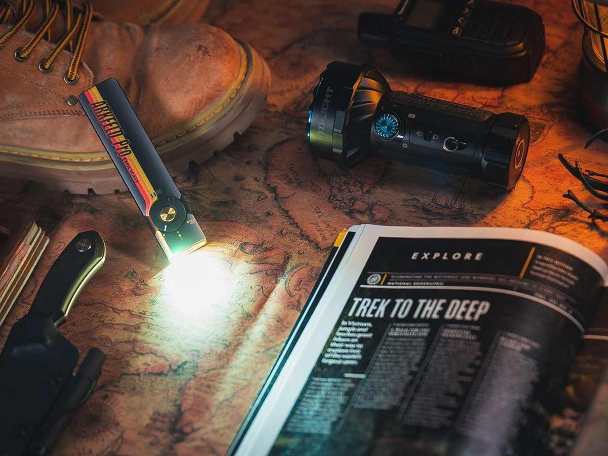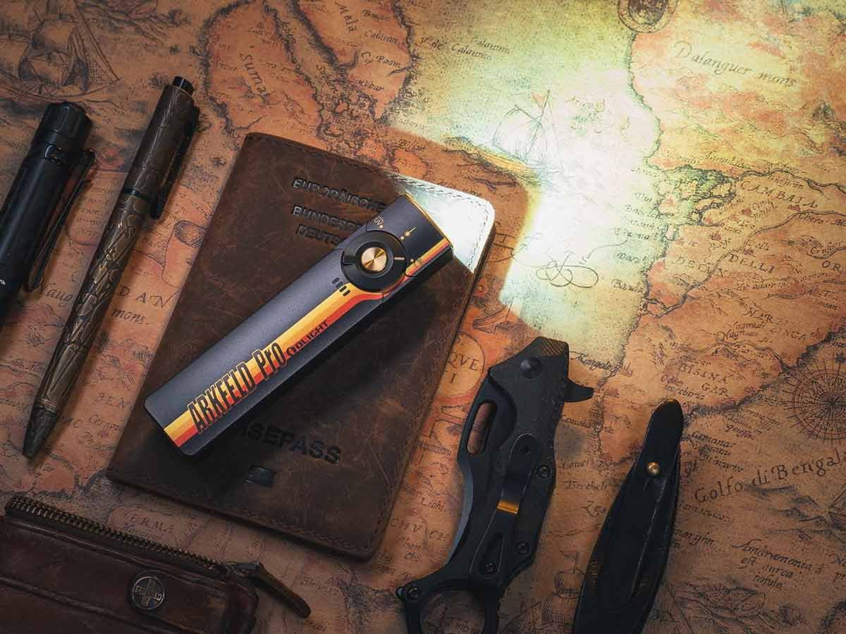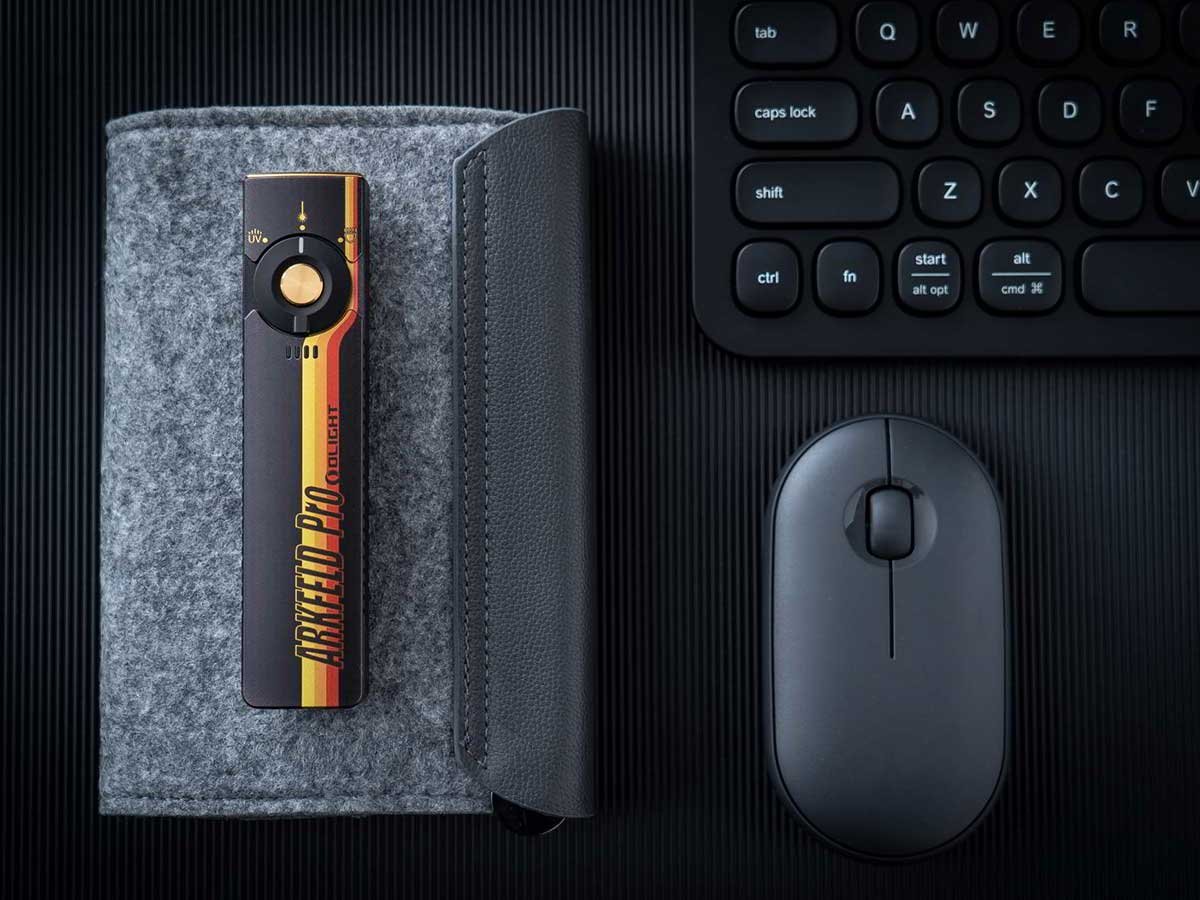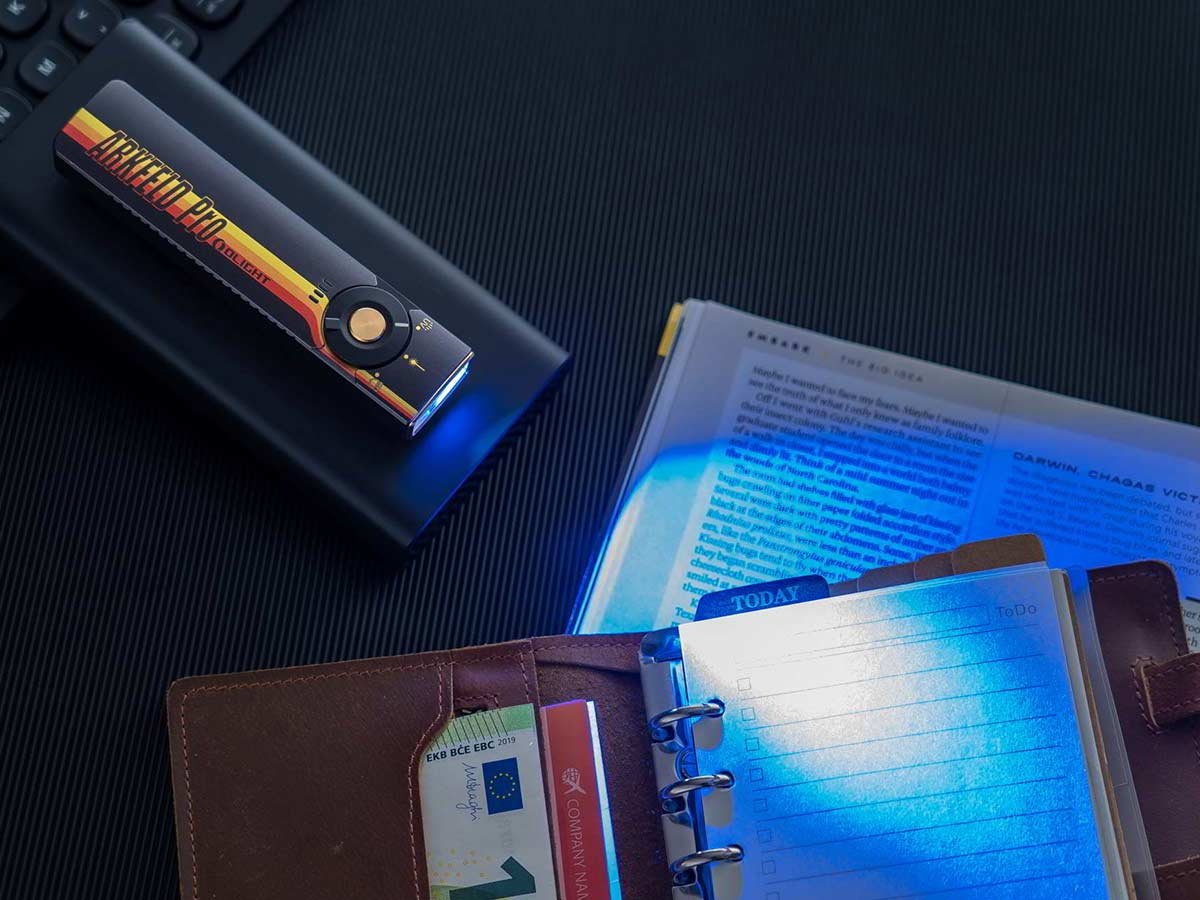 The Arkfeld Pro's triple lighting options are endlessly useful on a day-to-day basis. Use the laser pointer during presentations or to play with pets. In a flash you can switch to the UV light to identify counterfeit bills or monitor cleanliness. With the brilliant white LED, illuminate all surroundings with an output of up to 1,300 lumens! This upgraded everyday carry light is easy to travel or work with thanks to its slim, square design and two-way pocket clip.
