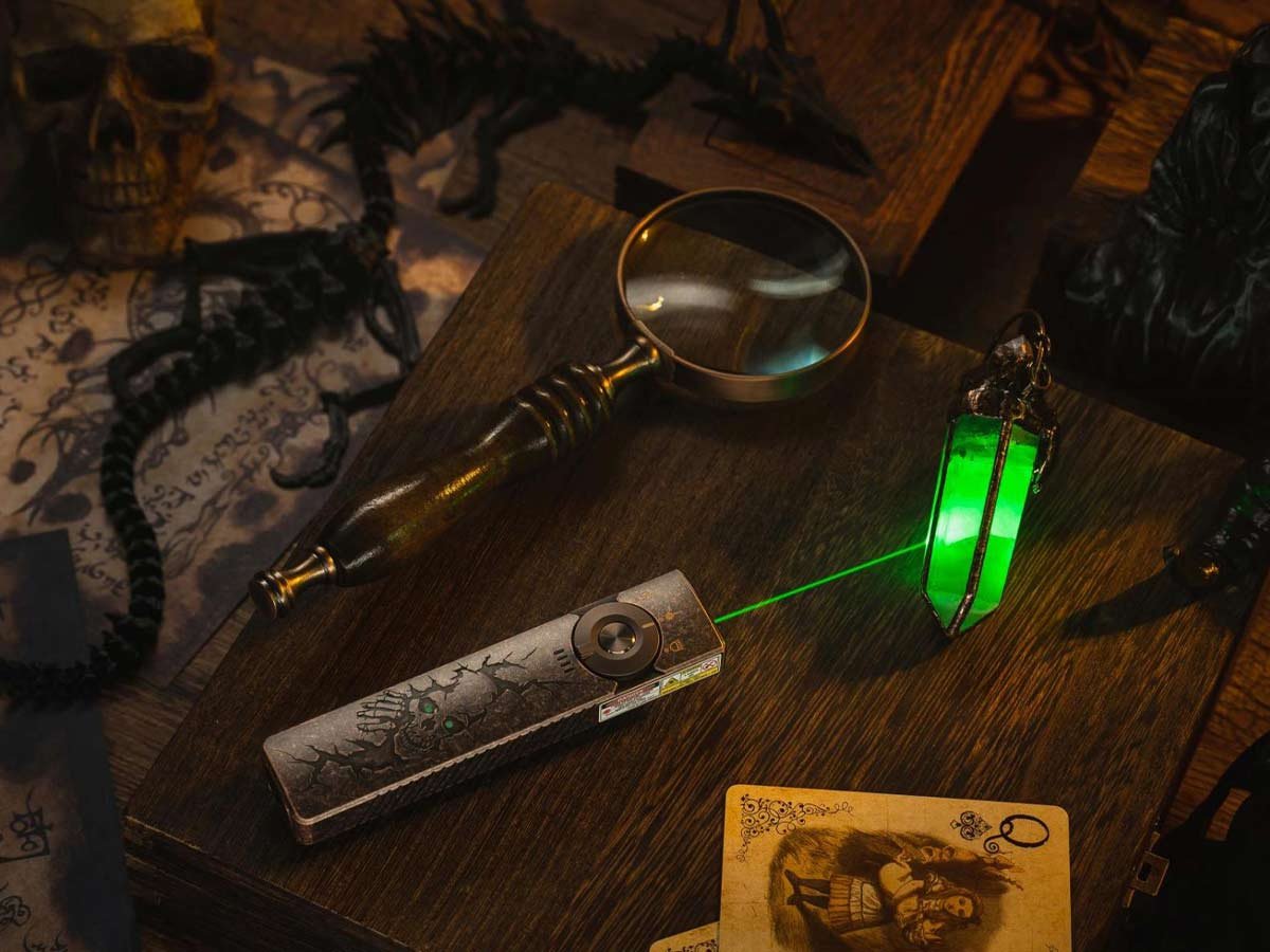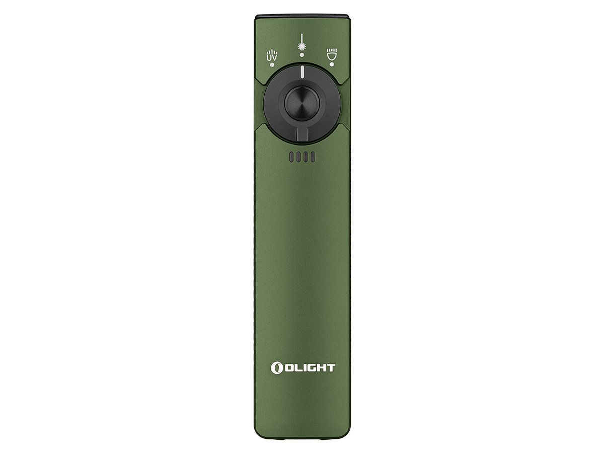 • » Access white LED, UV light, or green laser pointer all from central dial