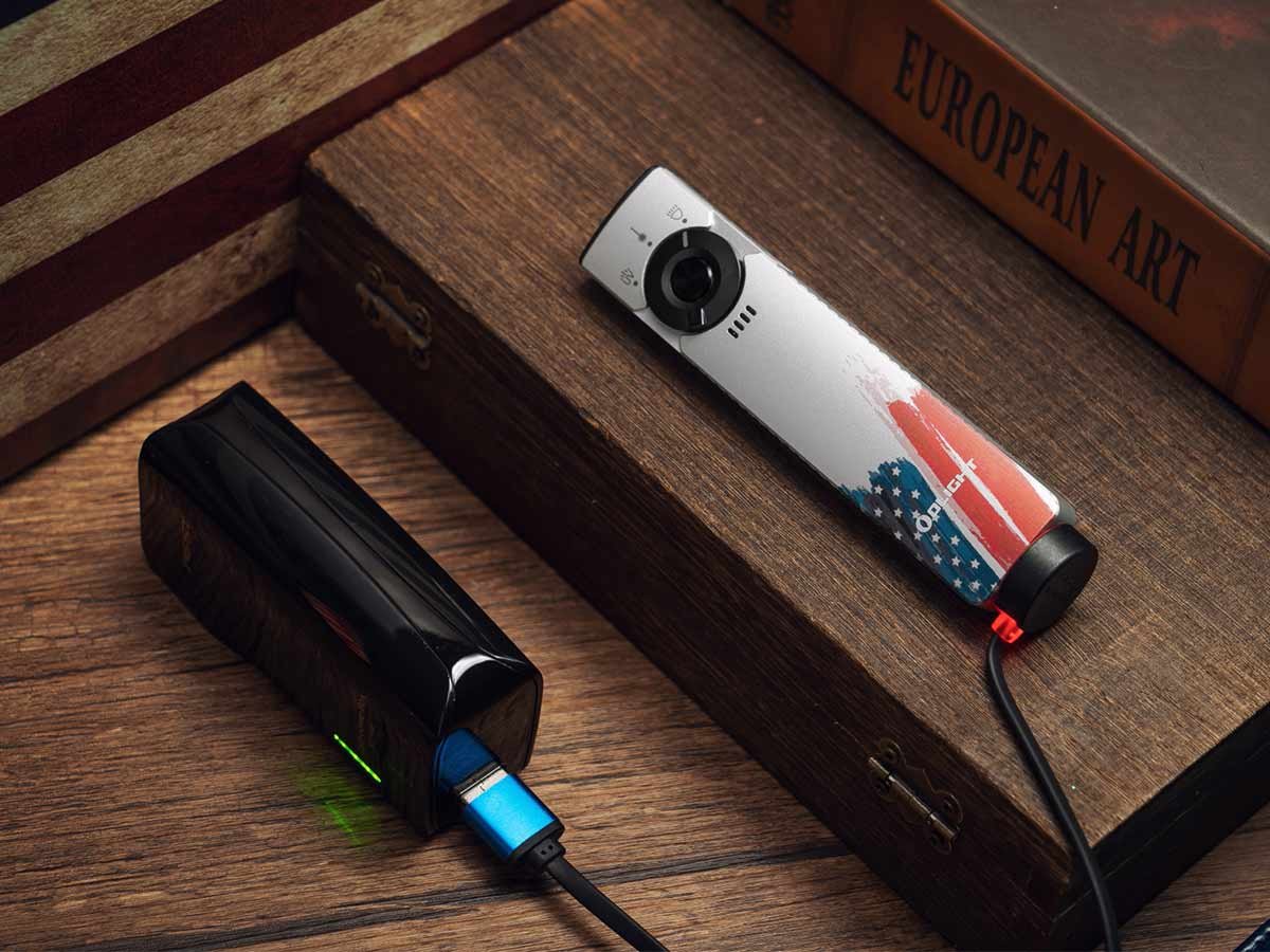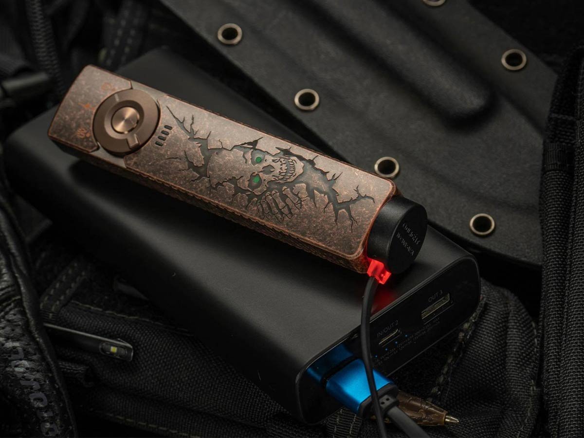 Keep your Arkfeld Pro powered with the internal 1500mAh lithium battery pack. Charging is easy with the included magnetic charging cable. You'll always know when it's time to recharge thanks to the central 5-level battery indicator located below the switch. This battery is built to give your UV light a max runtime of 5 hours, and your laser pointer a max runtime of 61 hours. On moonlight mode, the white LED can last up to 11 days, making it a great light to travel with on extended trips.