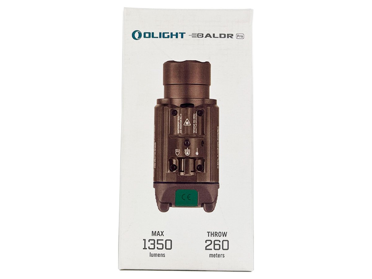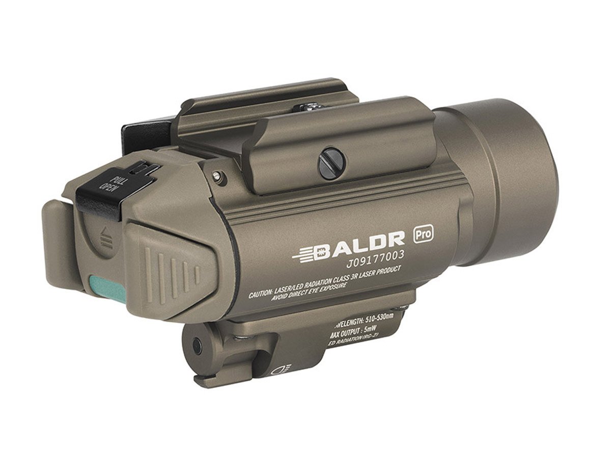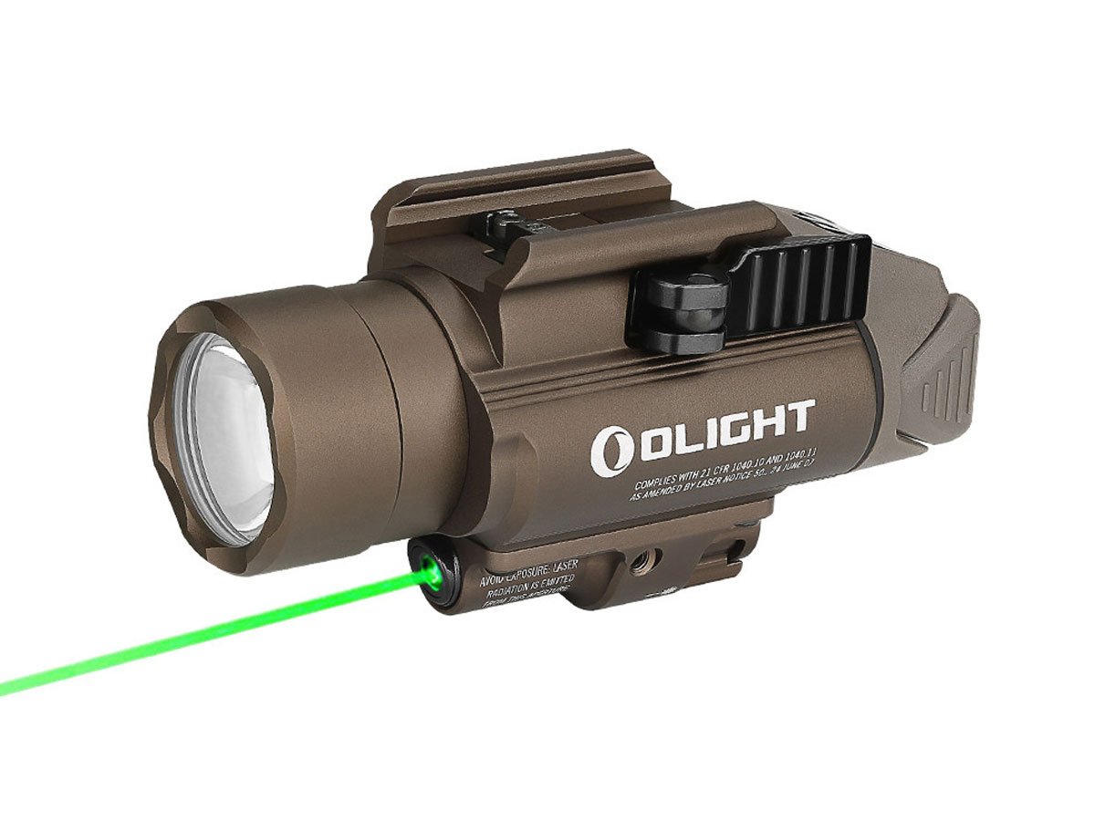 Olight Baldr Pro Weapon Light with Green Laser - Black or Desert Tan - 1350 Lumens - Includes 2 x CR123A
