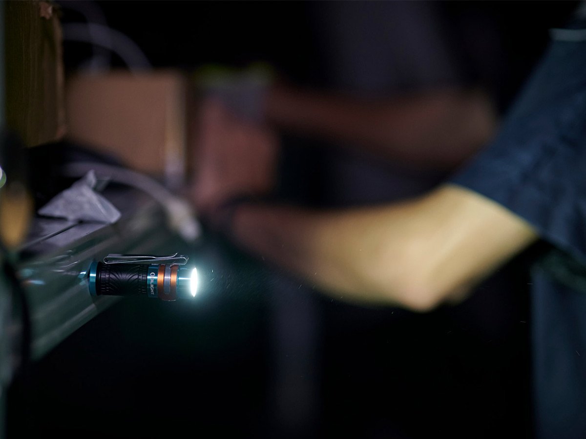 - » Magnetic tail cap is compatible with Olight's signature magnetic charging system and provides hands-free lighting