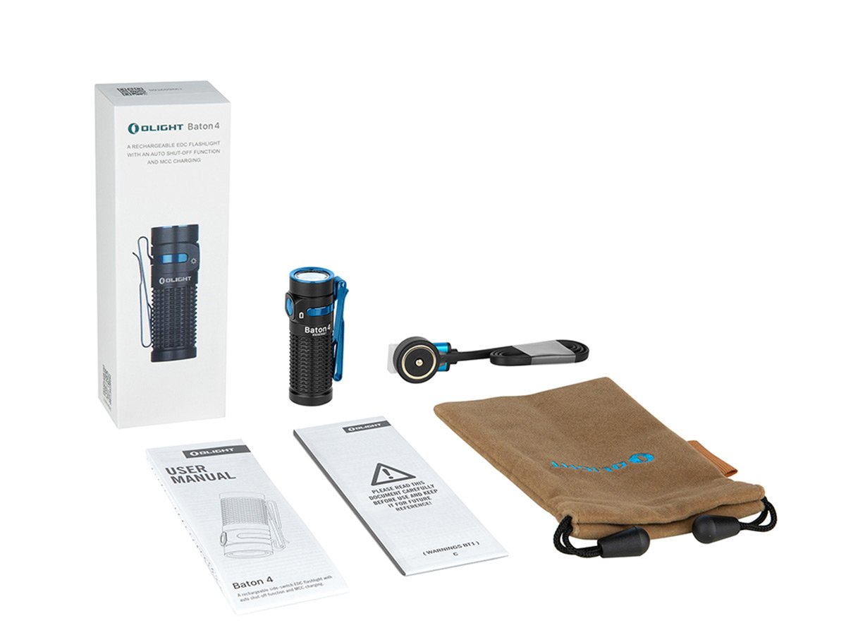 Olight Baton 4 Rechargeable LED Flashlight - 1300 Lumens - Includes 1 x 16340 and Optional Charging Case - Black or Other Colors