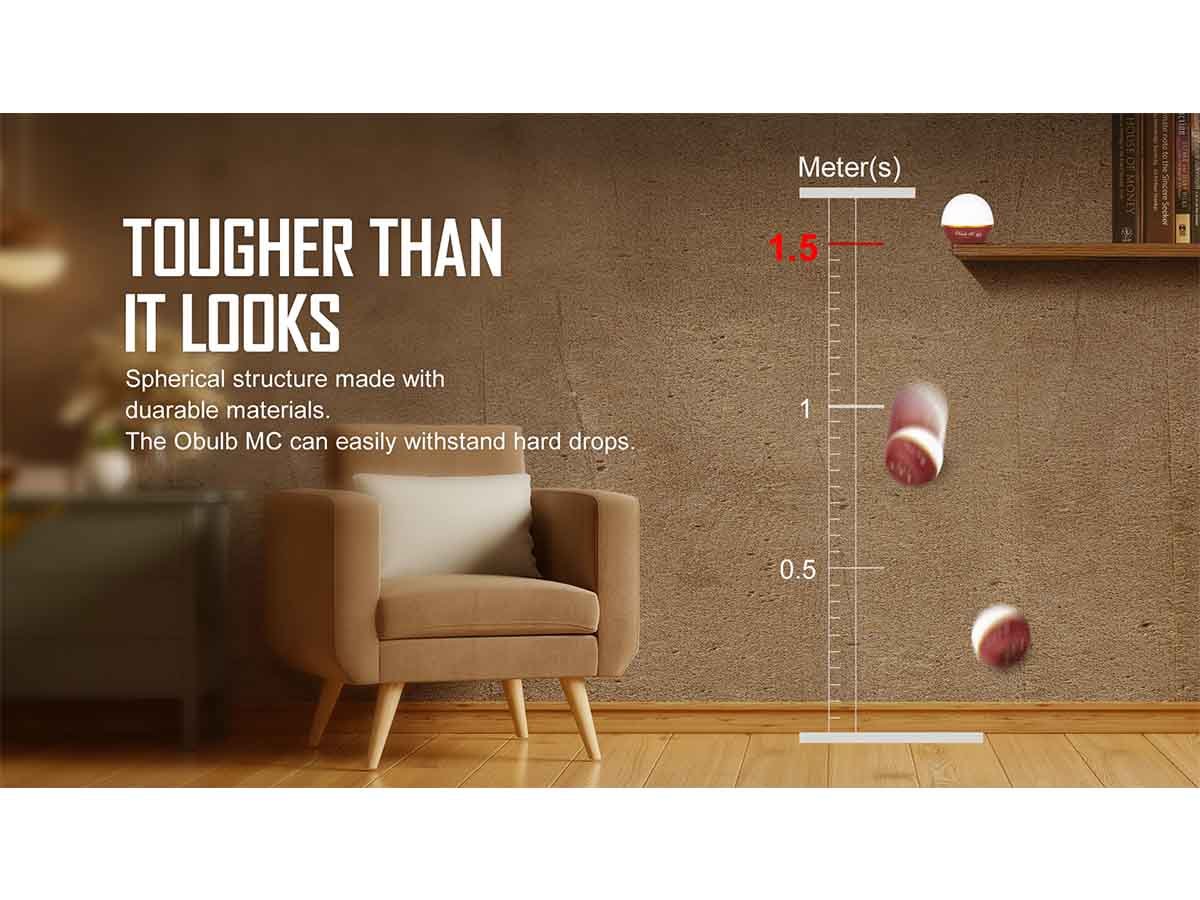 The Olight Obulb MC continues the legacy of the original Obulb and adds in some brand new features like multi-colored lighting and warm white modes. The Obulb MC has 8 total light modes ranging from pure white light to color changing to flashing. These modes are great while out camping, adding some additional colored lighting to outdoor parties, or as an emergency light for signaling.