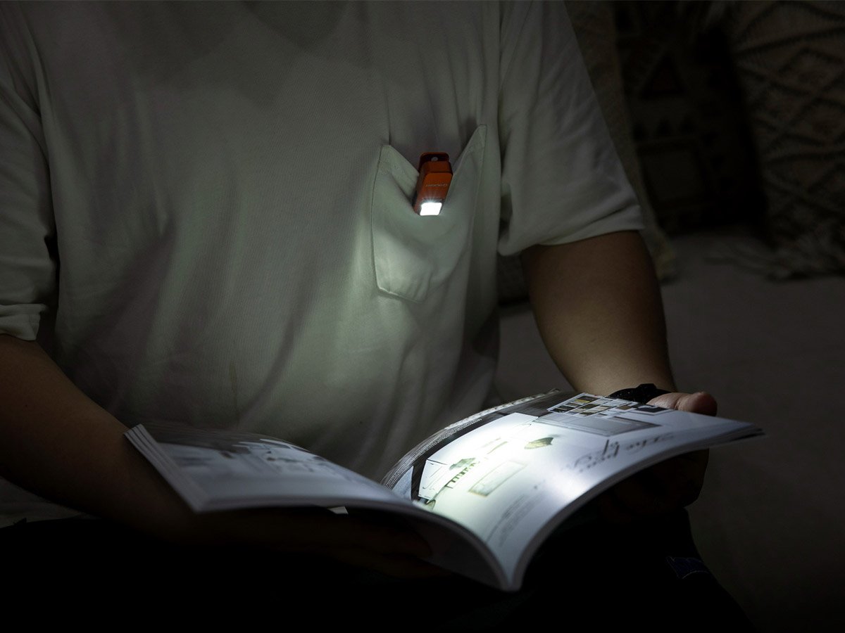 The clip of this light is designed to provide multiple carry methods. Using the clip itself, you can easily attach it to your clothes for hands-free lighting while you're on the move. You can also use its magnetic base to mount it to metal surfaces, providing intuitive overhead lighting. The included lanyard hole lets users carry it freely so that it's always within arms reach.