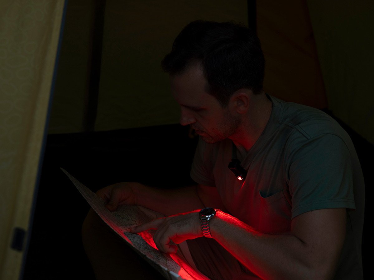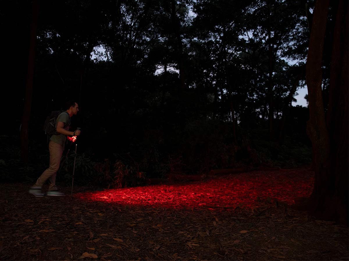 - Red light LED protects night vision and won't startle wildlife