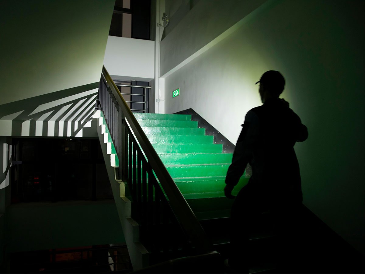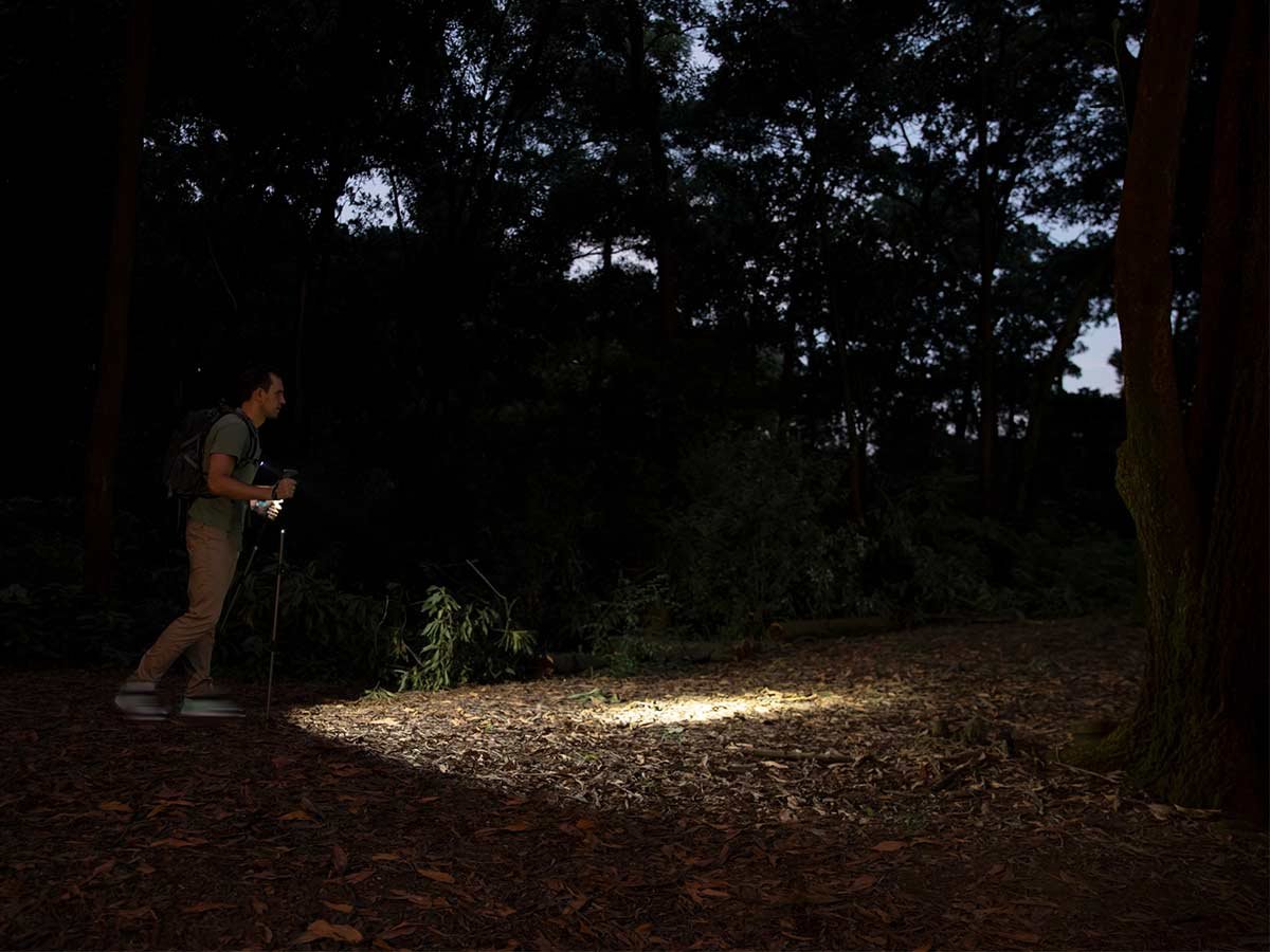 - Spot and flood beam output for navigating or surveying space outdoors