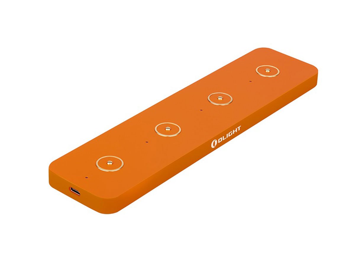 The Olight Omino is an extension socket with four magnetic charge ports designed to fit your favorite Olight flashlights. Attach to any USB power source with the included USB-C cable and charge up to four flashlights simultaneously! This charging station provides an easy way to charge and organize your Olight collection in one fell swoop.