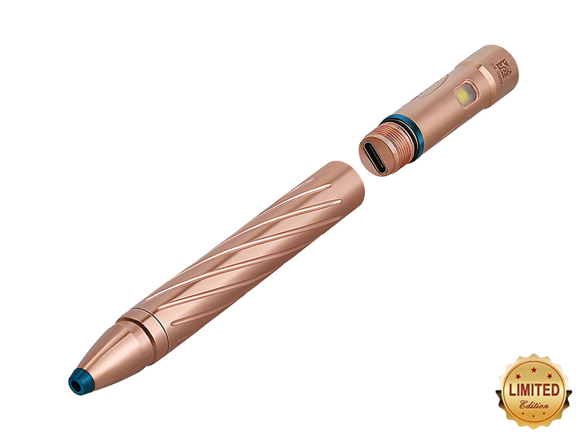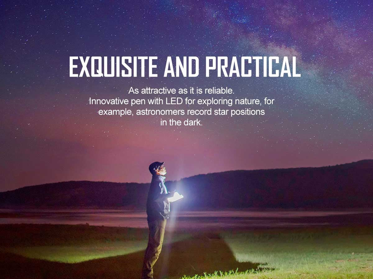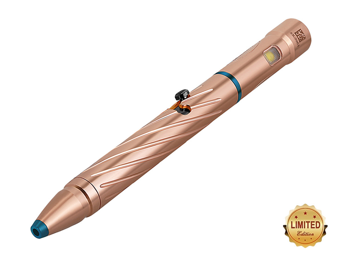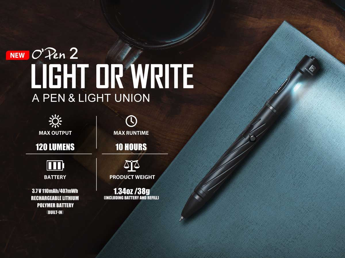 Olight's first forray into writing utensils with integrated LEDs, the Olight OPen 2 is both a reliable writing tool and lighting device. Featuring a 3737 Cool White LED, this pen emits up to 120 Lumens of light in a formfactor that is great for EDC use, travel, camping and more. A stylish and fun to use L-type bolt action lever is used to store and deploy the pen tip as needed for not taking, letter writing, or scribbling.