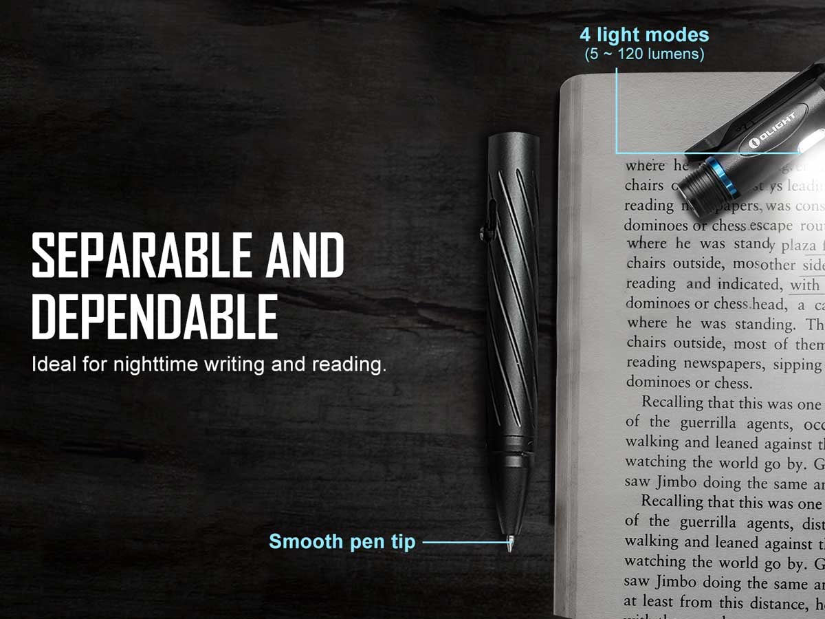Olight Open 2 Rechargeable LED Flashlight and Pen - 120 Lumens - Includes Built-In 3.7V 110mAh Li-Poly Battery Pack - Black or Desert Tan (Limited Edition)