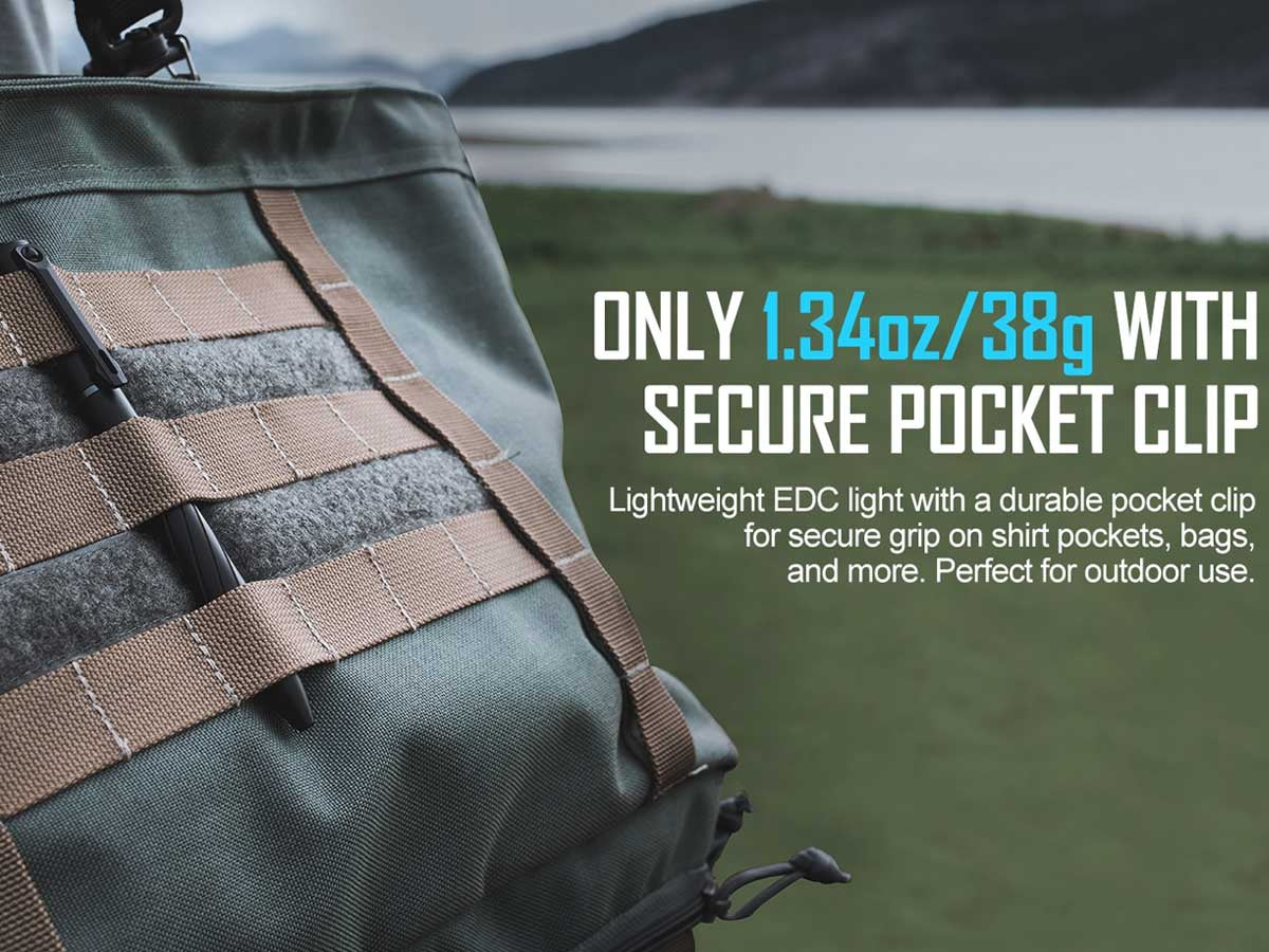 - » Integrated pocket clip latches to clothing and gear for easy carry