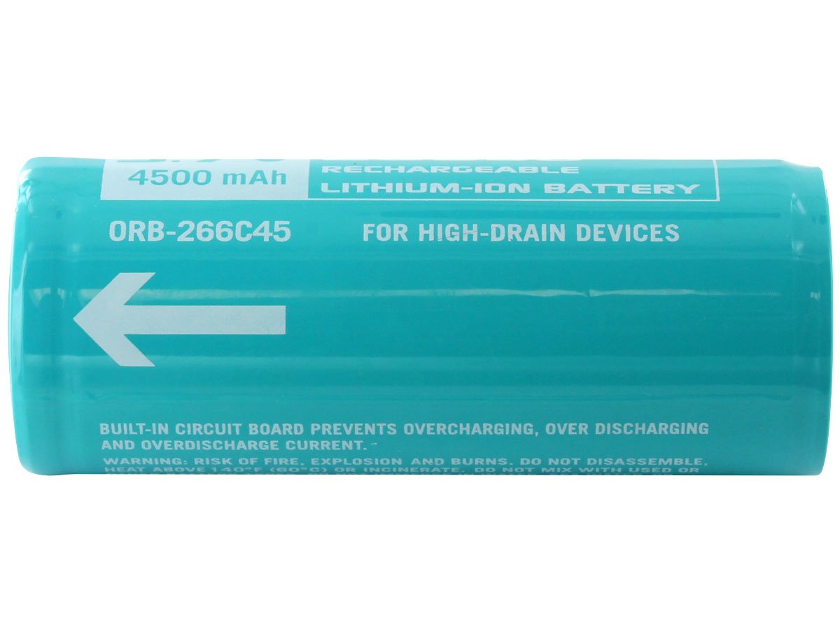 Keep your favorite Olight flashlight running with the Olight ORB 266C45, a custom made 26650 battery for R50 Seeker and R50 PRO model lights as well as the S80. This battery provides 3.7 Volts of consistent power, and holds a heavy duty 4500mAh capacity for ultra long runtimes. The 266C45 is the perfect way to replace the original battery, or to just have on hand as a back up.