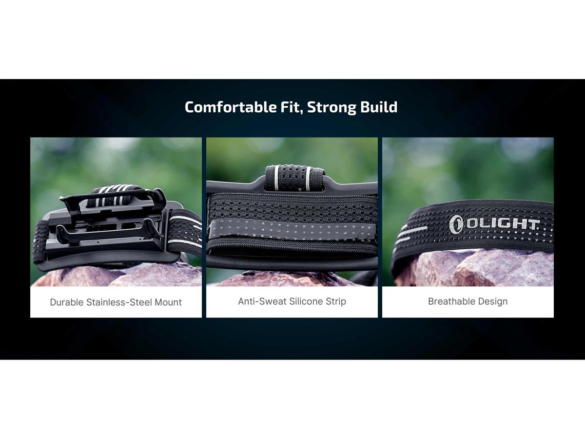 - » Anti-sweat silicone strip prevents slips so the headlamp won't fall off