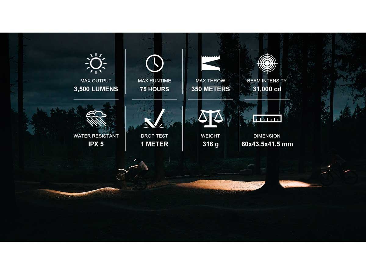 Along with it's LED light functions, the RN 3500 also comes with a rechargeable Li-ion battery pack that can double as a powerbank for any USB powered device. So for things such as smartphones and tablets, the RN 3500 will be your best friend while out exploring or on camping trips.
