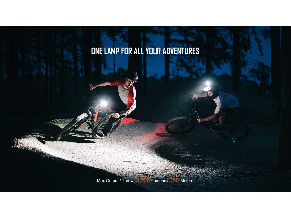 The Olight RN 3500 is a powerful and versatile bike light with high lumen output and rechargeable functionality. Outfitted with a set of 5 Luminus SST-20 LEDs, this light can reach up to a stunning 3500 lumens! This powerful output is bolstered by several lighting modes and levels that allow you to dial in the perfect amount of light for your preferred evening activity. Designed for biking, the RN 3500 is also great for all manner of evening activities such as camping, hiking, or evening get-togethers.