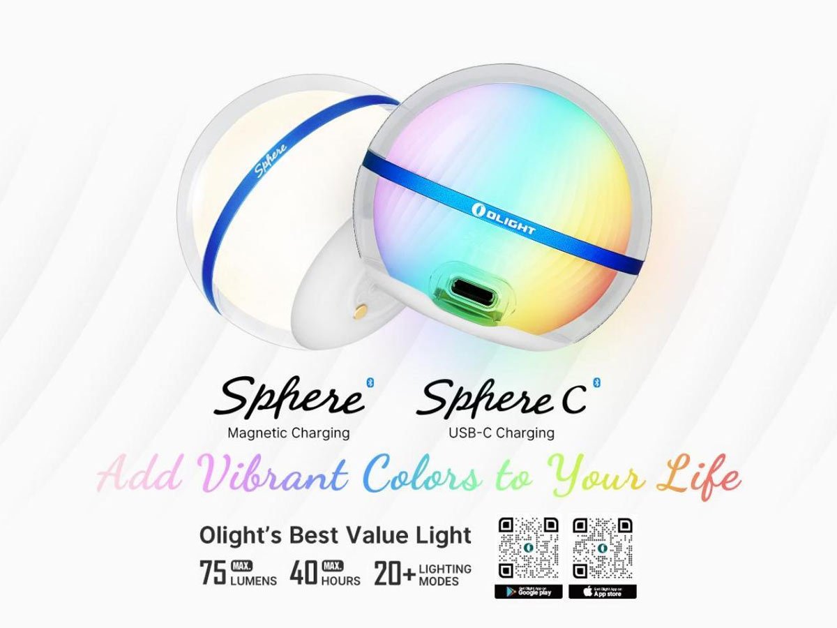 Olight Sphere C Rechargeable LED Lantern - 75 Lumens - Uses Built-in 700mAh Li-ion Battery Pack - Clear or Stellar Sky