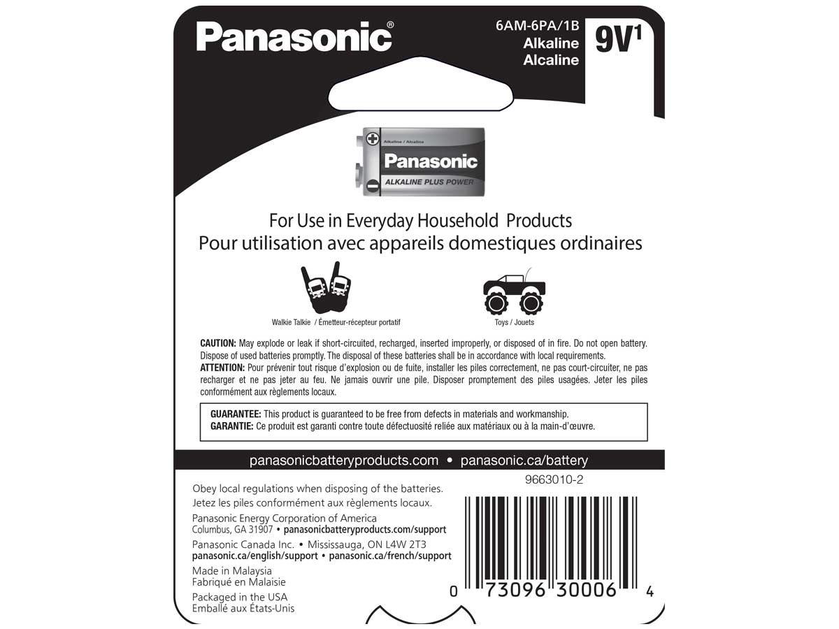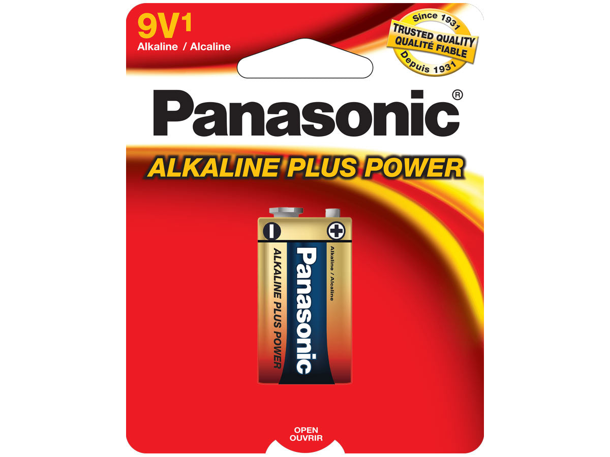 High power demands are easy to handle with the Panasonic 9V Alkaline Plus Power! Its 9V output easily handles the power demands of flashlights, remote controls, and even portable radios. Thanks to its alkaline chemistry, it has a shelf-life of up to 5 years, ensuring it's ready to go whenever you need, even after years in storage. This reliable chemistry also makes it a great powersource for smoke detectors!