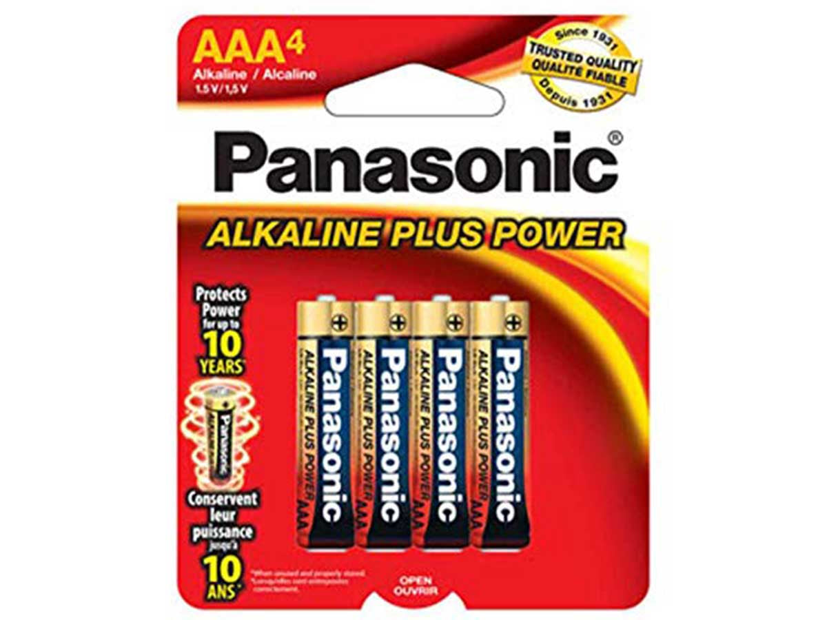 A powerful and reliable power source, Panasonic Alkaline Plus AAA Batteries are the batteries you need for the most popular electronics. These batteries offer long lasting performance and an incredible 10 year shelf life, great for emergencies and backup power. Alkaline Plus batteries are guaranteed to be leak resistant, and AAA sized cells fit in to many common devices such as remotes, toys, alarm systems and more. This package of batteries includes 4 shrink wrapped cells.